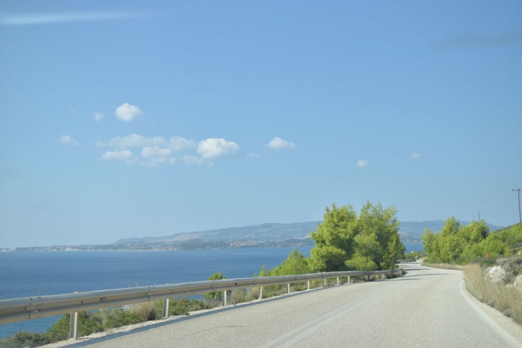 Wir fahren los, die kurvige Küstentraße entlang. Wir fahren an Argostoli vorbei und folgen dem „Fjord“, der einen Teil der Insel faktisch abtrennt. Die Landschaft ist hügelig und bewaldet, überall stehen Olivenhaine. Eben so, wie man sich Griechenland vorstellt.