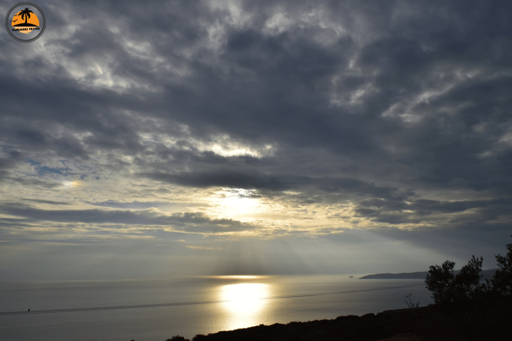 Wir fahren aus Argostoli heraus, an der Küste entlang auf der Suche nach einem ganz besonderen Strand. Wir suchen den Koroni Beach, hier legen die Karettaschildkröten ihre Eier ab. Selbstverständlich haben wir vorher geprüft, dass im Moment kein Schlüpfsaison ist. Immer höher führt der Weg und wir bekommen einen tollen Blick über die Insel und das Mittelmeer. Man kann sich förmlich vorstellen, wie Odysseus hier zwischen den Inseln mit seinem Segelboot Argo umhergeirrt ist.