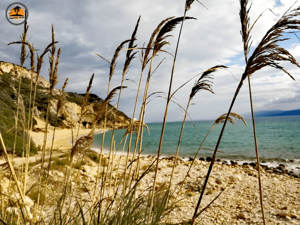 Der Weg hat sich auf jeden Fall gelohnt. Der Strand ist wunderschön, der feinste Sand, den wir bis jetzt auf Kefalonia gesehen haben. Vor uns ist noch ein weiteres Auto angekommen, dass sich aber bald verabschiedet. Wir genießen die Stille, die Sonne, das Rauschen des Meeres und den feinen, weißen Sand zwischen unseren Zehen.