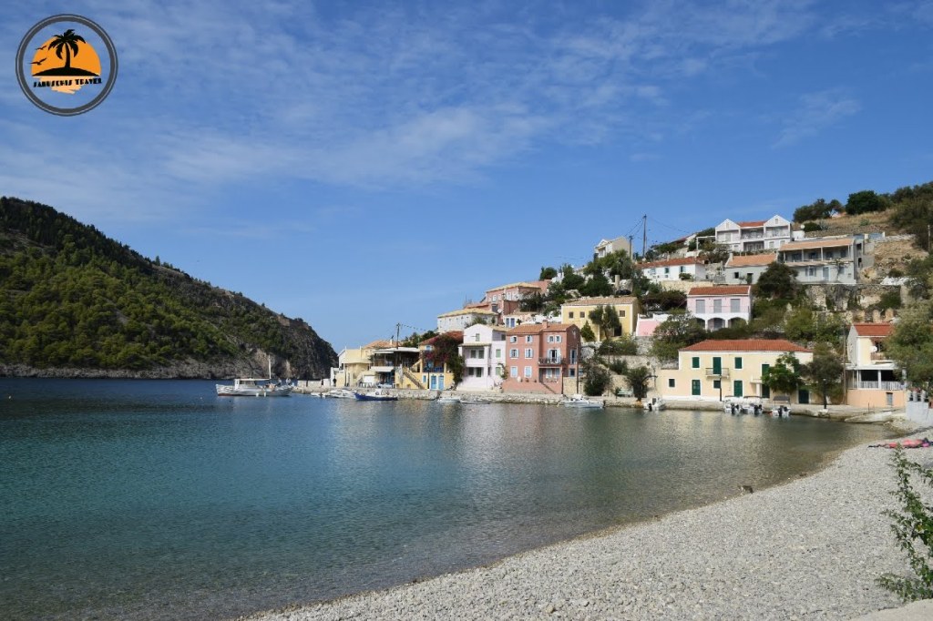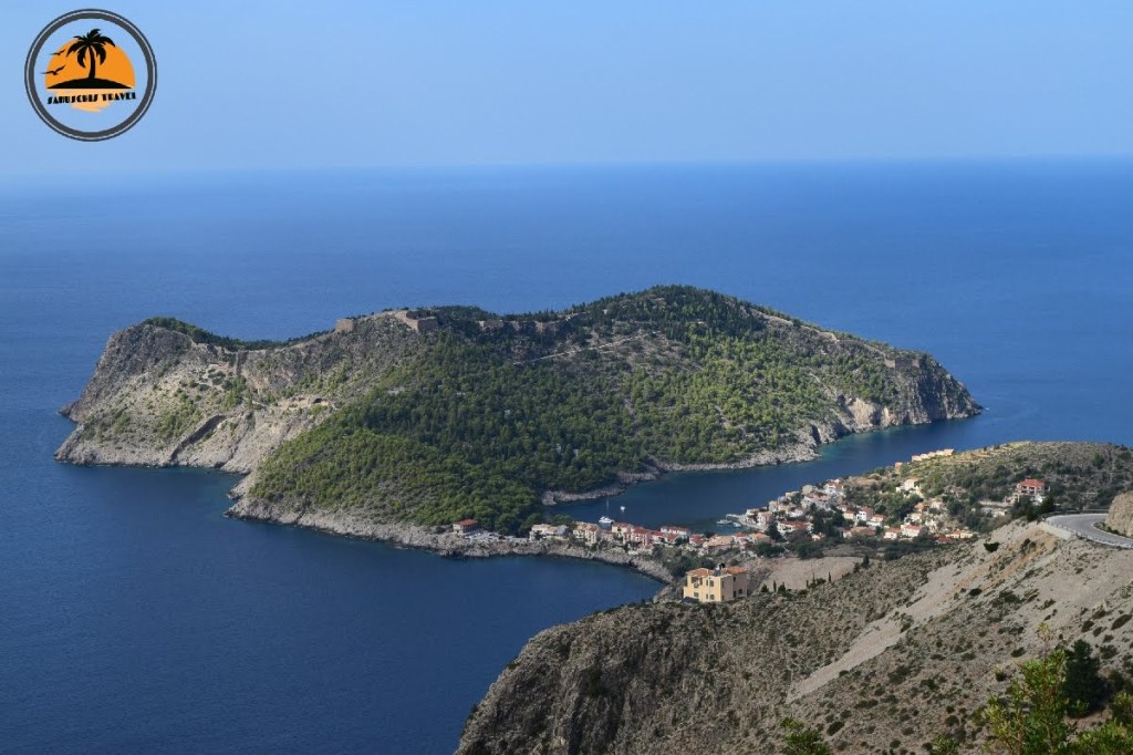 Asos ist ein echtes Postkartenmotiv. Ein kleines Dorf an einer Bucht mit klarem Wasser gelegen, lauter kunterbunte Häuschen, enge Gassen und über alldem thront, nur durch einen winzigen Zipfel Land verbunden, eine gewaltige Festungsanlage.