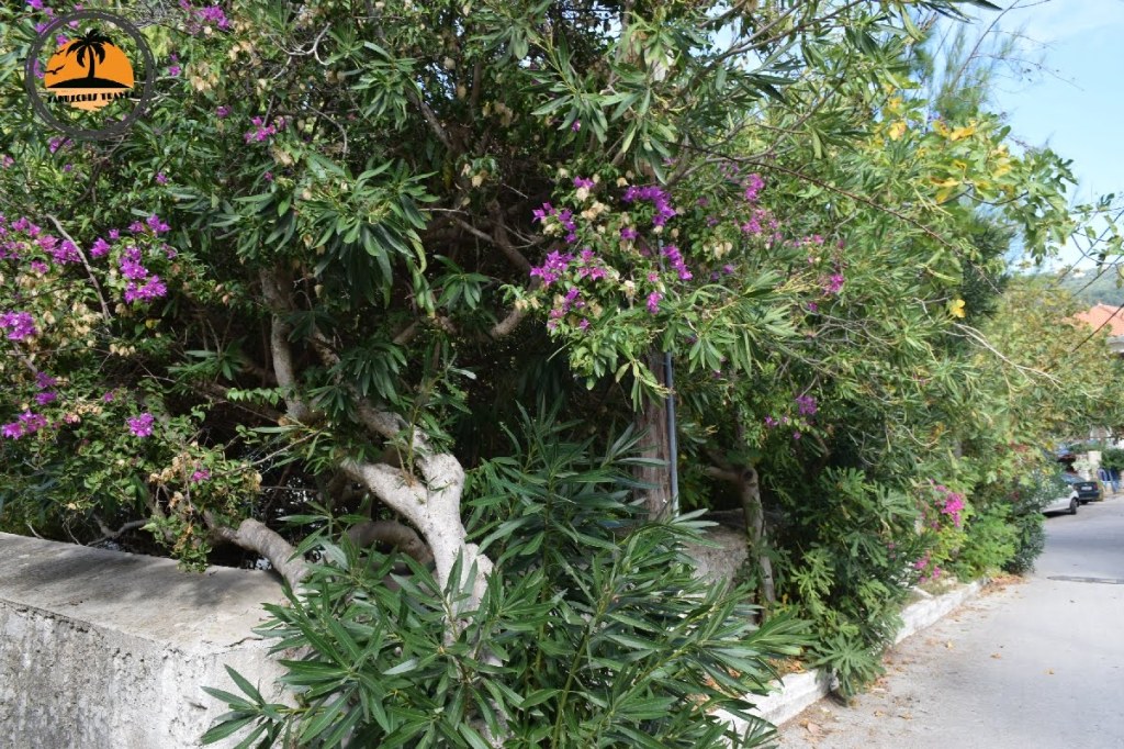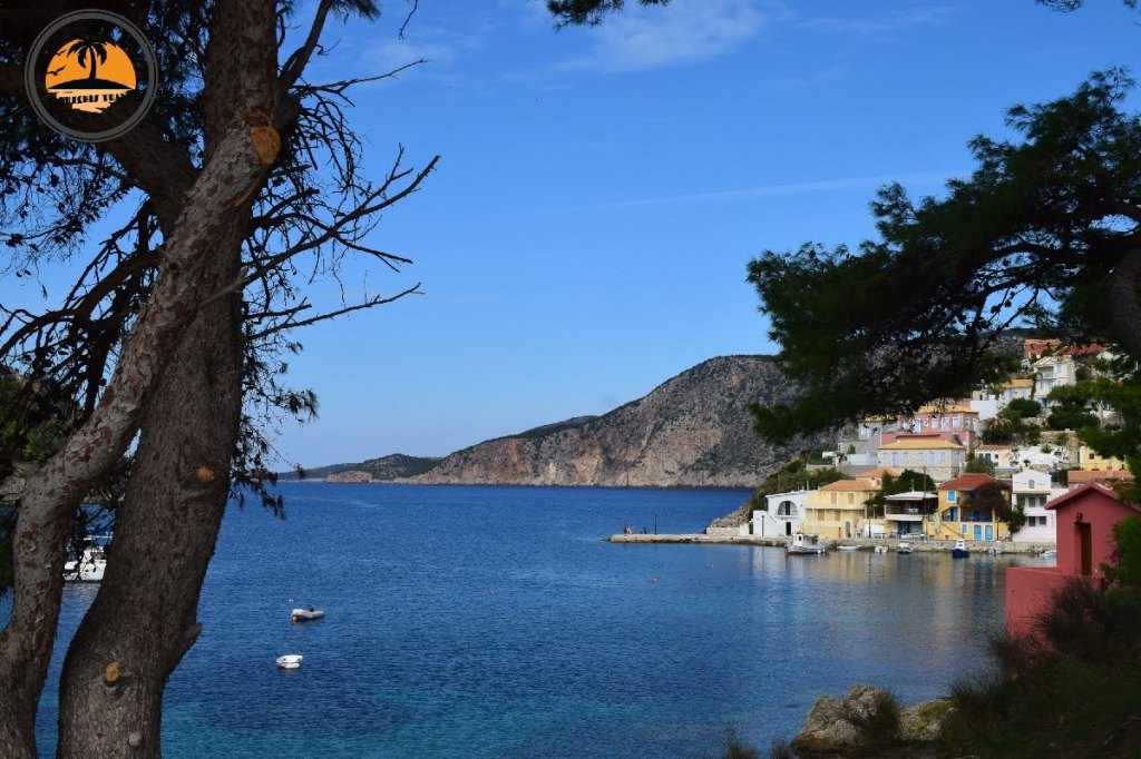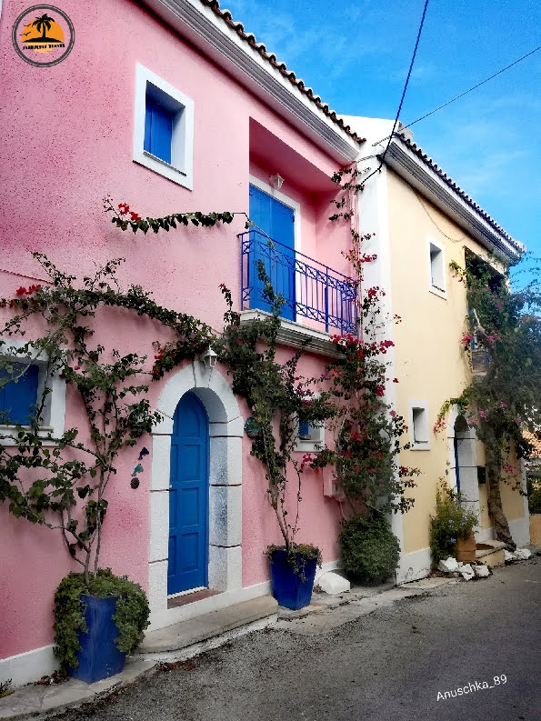 Wir laufen durch die engen Gassen Richtung Bucht. Der Ort wirkt ein bischen wie ein Filmkulisse für einen Film aus Griechenland. Alles ist bunt, toll bepflanzt und eingerahmt von Meer und Bergen. Wir bestaunen die Mischung aus liebevoll restaurierten und völlig verfallenen Häusern. Einige sind nach dem großen Erdbeben von 1953 einfach nicht mehr aufgebaut worden. Diese Beben hat damals fast alle größeren oder historischen Gebäude auf Kefalonia zerstört. Orginale Häuser findet man ausschliesslich im Fischerort Fiskardo, der auf Grund seines felsigen Untergrundes von dem Beben weitgehend verschont bliebt.