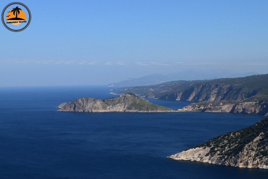 Die Küstenstraße zieht sich in mehr oder weniger engen Kurven an den Berghängen entlang, hier ist konzentriertes Fahren gefragt. Auch der eine oder andere Steinschlag auf der Straße, sowie die omnipräsente Ziegenpopulation fordern die volle Aufmerksamkeit des Fahrers. Dafür werden wir mit einem phantastischen Ausblick auf das blaue, ionische Meer belohnt. Die ersten Schilder tauchen auf: Myrtos Beach.