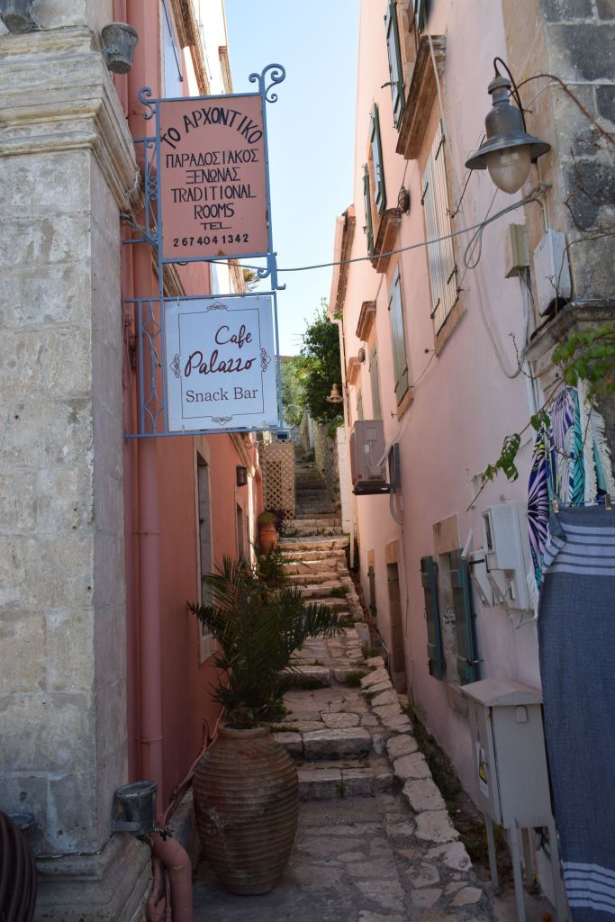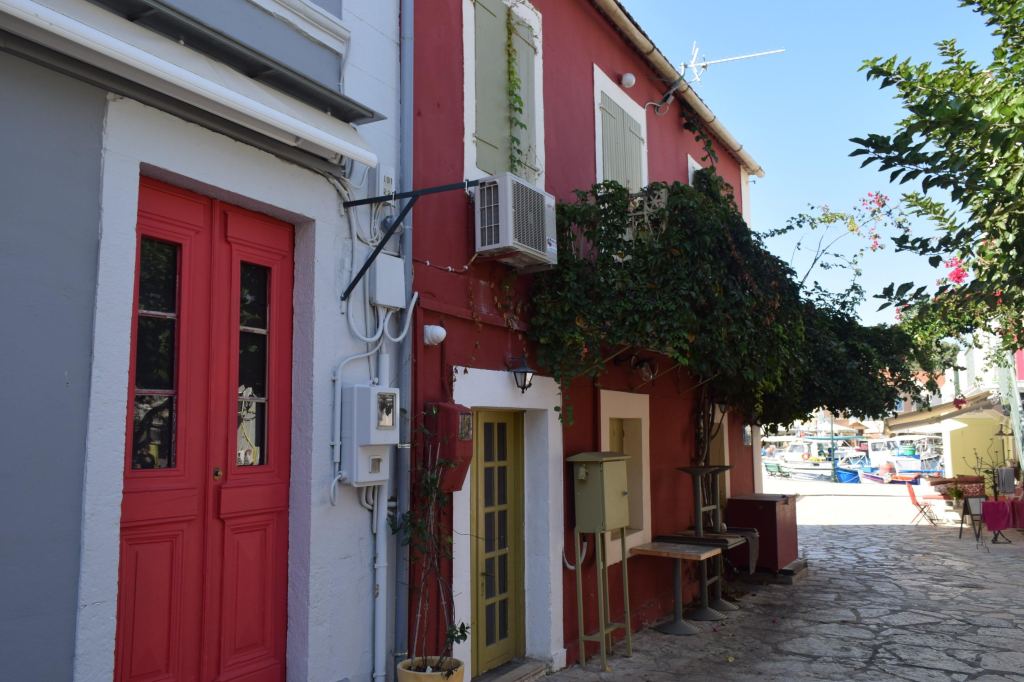 Wir betreten die Stadt und staunen nicht schlecht, mit wie viel Liebe zum Detail die Häuser hier gestaltet und restauriert sind. Bereits seit den 70er Jahren herrschen in Fiskardo strenge Bauvorschriften: Höhe und Stil der Häusser müssen eingehalten werden, aber auch die Farbe der Fensterläden spielt im Ortsbild eine sehr wichtige Rolle und ist vorgeschrieben. Die Behörden haben damals schnell erkannt, dass Fiskardo ein Tourismusmagnet werden könnte. So kam es dann auch.