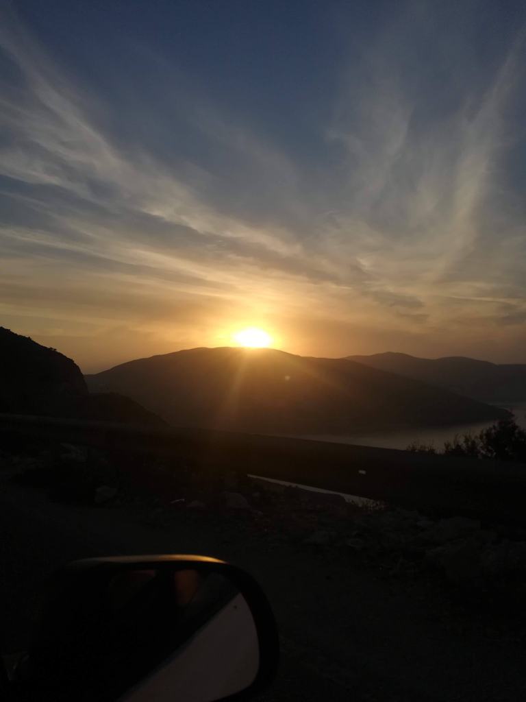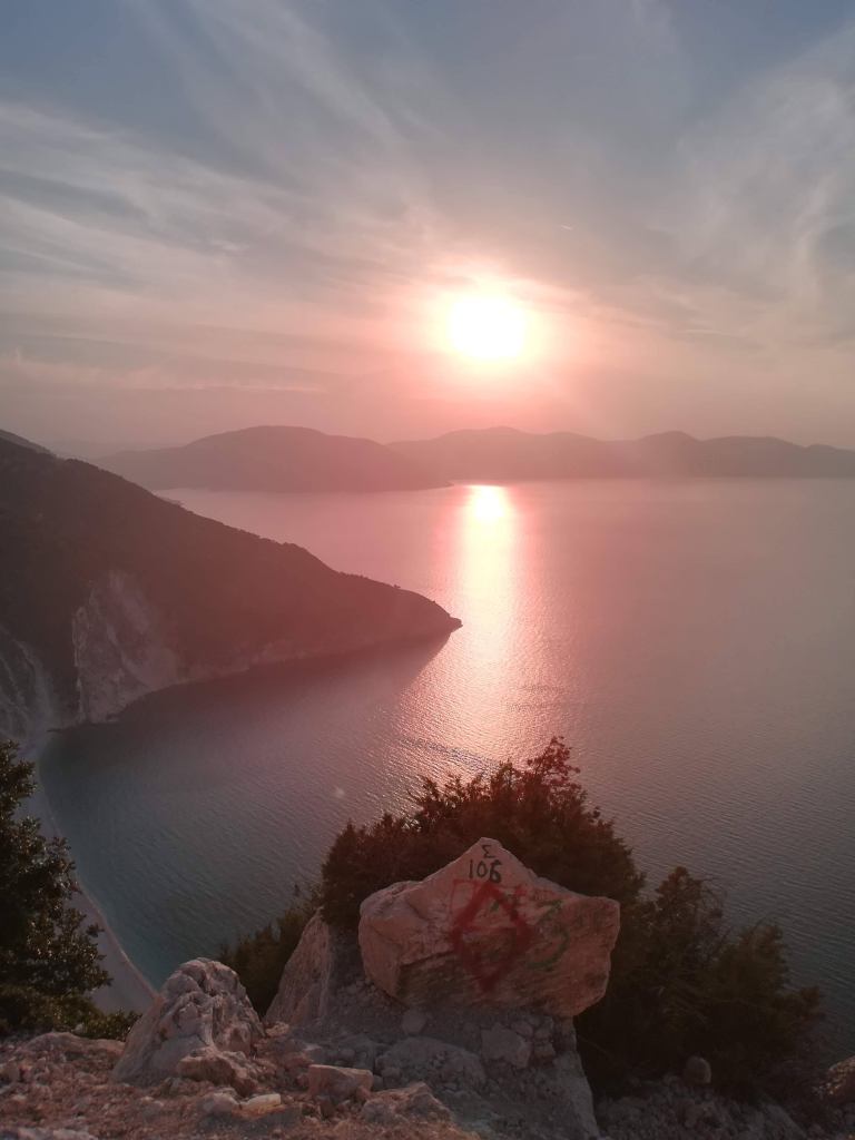 Zum Abschied halten wir noch einmal am dem tollen Aussichtpunkt über dem Myrtos Beach und geniessen einen letzten Blick über die Weite des Ionischen Meeres. Ein toller Sonnenuntergang versüßt uns unseren letzten Abend.
