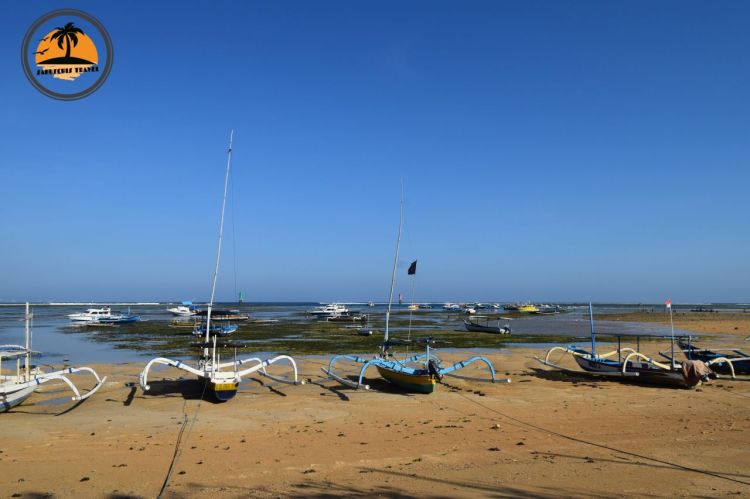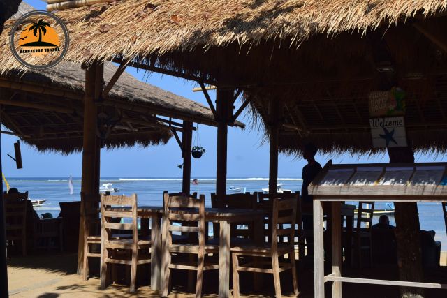 Am nächsten Morgen erkunden wir erstmal die Umgebung. Tatsächlich, wie versprochen, nur ein kurzer Hüpfer bis zur Strandpromenade. Der Strand ist wirklich wunderschön, das Meer klar und blau. Wichtig zu wissen ist, dass auf Bali ein klarer Tidenhub, also Ebbe und Flut herrschen. Es kann einem also passieren, dass man an den Strand kommt und das Meer einfach weg ist ;-). Die Promenade wird gesäumt von Restaurants, Warungs (Garküchen) und Shops. Die meisten sind liebevoll gestaltet und haben Sitzplätze direkt im Sand und die kulinarischen Angebote könnten vielfältiger nicht sein.