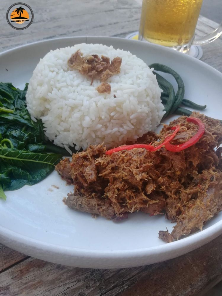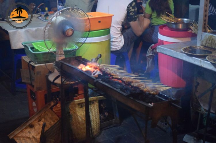 Für den Abend haben wir uns vorgenommen den Nachtmarkt zu besuchen. Quasi ein tägliches „Streetfoodfestival“ im ursprünglichen Sinne. Unter einem großen Blechdach sind kleine Stände aufgebaut, an denen indonesische Speisen verkauft werden. Von Sate-Spießen in Erdnusssauce bis zu frischen Smoothies ist alles dabei und das für wirklich kleines Geld. Eine Tüte Satespieße kostet uns umgerechnet knapp 80 Cent. Hier kann man gut in die balinesische Küche hineinschnuppern und sich einfach mal durchprobieren. Wir haben die Erfahrung gemacht, dass das Essen auf Bali so frisch zubereitet und eigentlich immer so heiss gebraten oder gekocht wurde, dass man eigentlich überall essen konnte.
