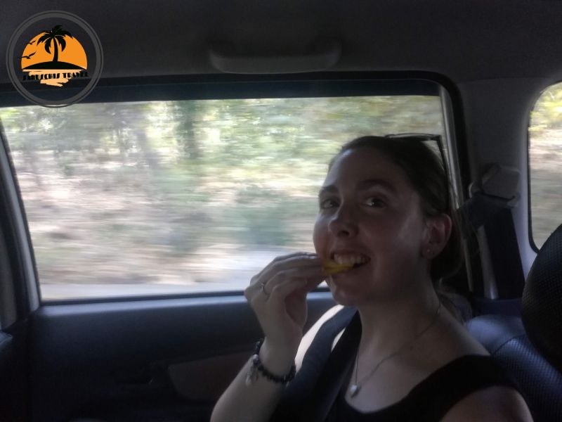 Auf dem Weg nach Lempuyang bestaunen wir den üppigen Dschungel Balis. Neben wild wachsender Ananas haben wir sogar das Glück einen frei lebenden Affen zu sehen. Unser Fahrer Agung bietet uns eine Frucht an: „Jackfruit“, meint er. Wir probieren vorsichtig: säuerlich mit der Konsistenz rohen Hähnches. Ist mal was anderes, aber unsere neue Leibspeise wird es sicherlich nicht! Und als Fleischersatz, als solches wird es nämlich mittlerweile gehypt, trauen wir uns auch nicht wieder ran 😀