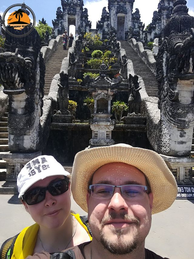 Die wunderschönen Treppen schlagen uns sofort in ihren Bann. Wunderschöne Steinarbeiten und auch das große Tempeltor, bekannt als Heavens- oder Baligate mit dem Vulkan im Hintergrund sehen phanastisch aus.