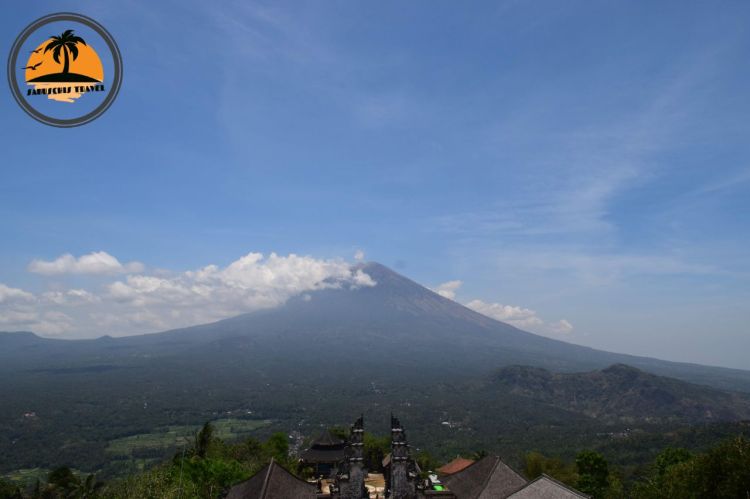 Plötzlich geht es nicht weiter. Vor uns sitzt mitten auf der Straße ein Mann mit einem Stopschild. Am Rand steht ein weiterer mit Funk. Was los ist? Unklar! Wir fragen Agung, unseren Fahrer. Der Weg nach oben zum Tempel sei einfach zu schmal. Da können keine zwei Autos aneinander vorbei kommen. Also kann nur jemand hoch, wenn gerade keiner runter kommt. Genial gelöst ohne Ampel und das mit nur vier Personen. Nach wenigen Minuten geht es weiter. Beim Hochfahren wird klar, warum diese Straße faktisch eine Einbahnstraße geworden ist und man möchte sich die Lage hier nachts gar nicht erst vorstellen…