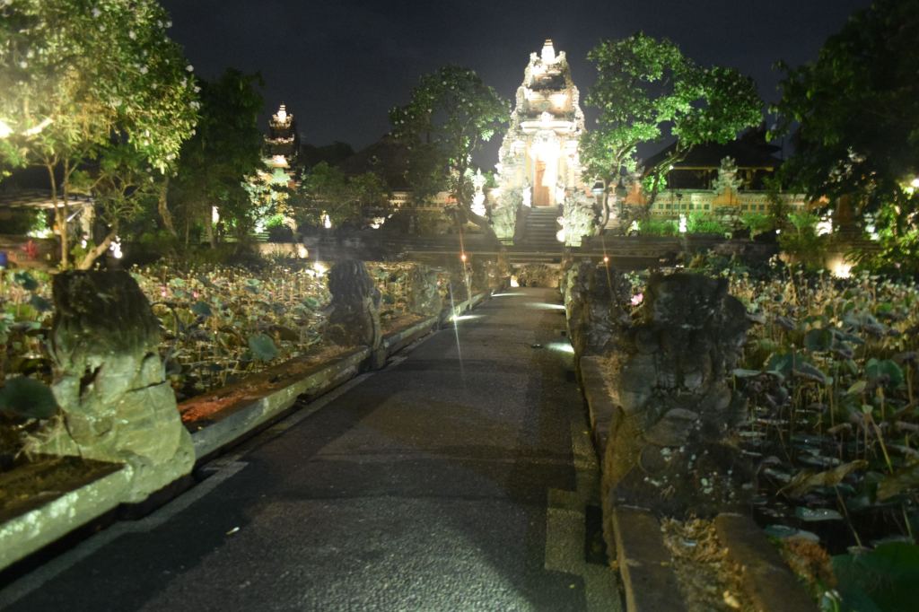 Auf dem Weg dorthin schauen wir uns noch den Saraswati Tempel direkt im Zentrum von Ubud an, der mit seinem riesigen Seerosenteich eine echte Augenweide ist. Direkt an den Tempel ist ein Starbugs gebaut, irgendwie skurril.