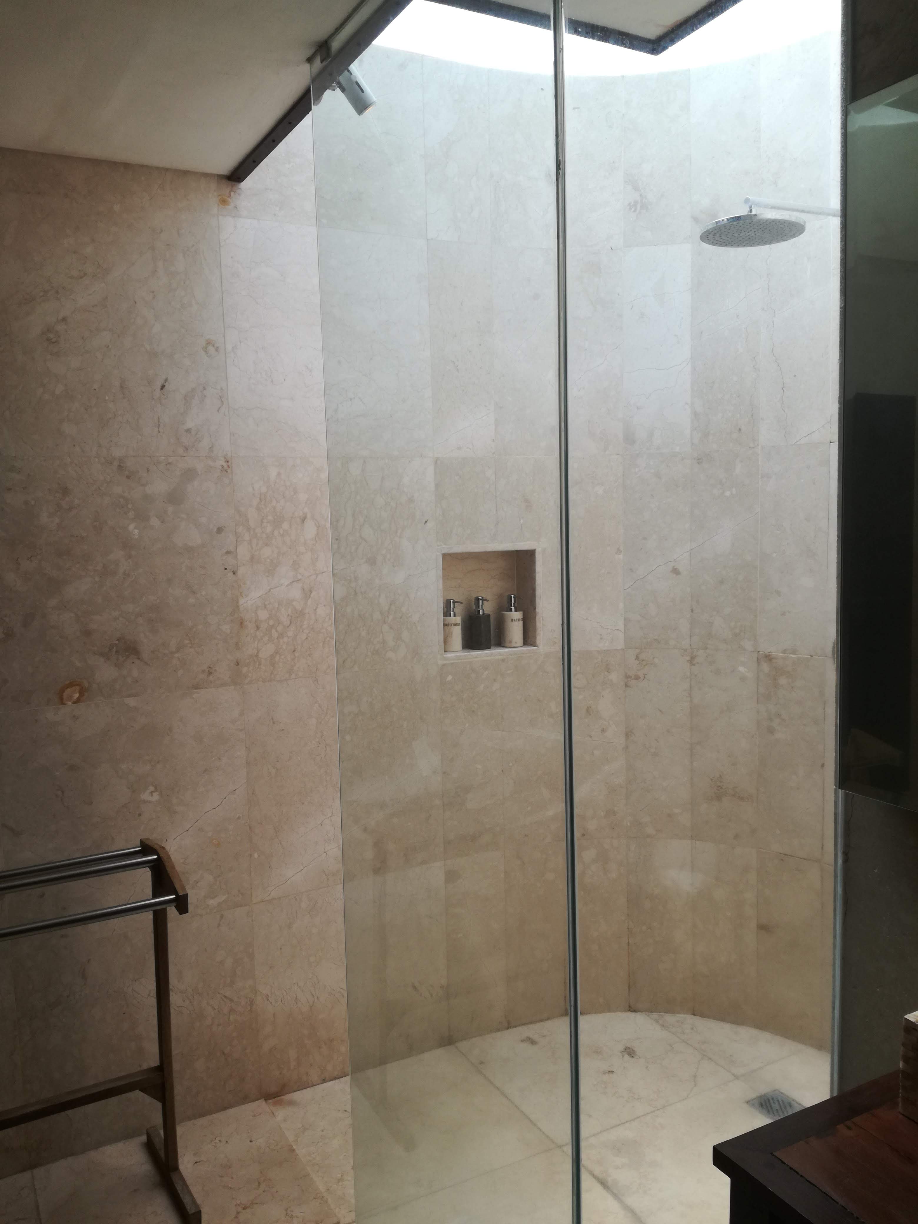 Wir halten an unserer Villa und sind, als wir die Tür öffnen sofort, überzeugt: Hier werden wir uns definitiv wohlfühlen! Die Villa ist groß und luftig, mit einem eigenen Plunchpool an der Terrasse, sowie einem großen Bad mit Tageslichtregendusche. Genau so hatten wir uns das vorgestellt 🙂