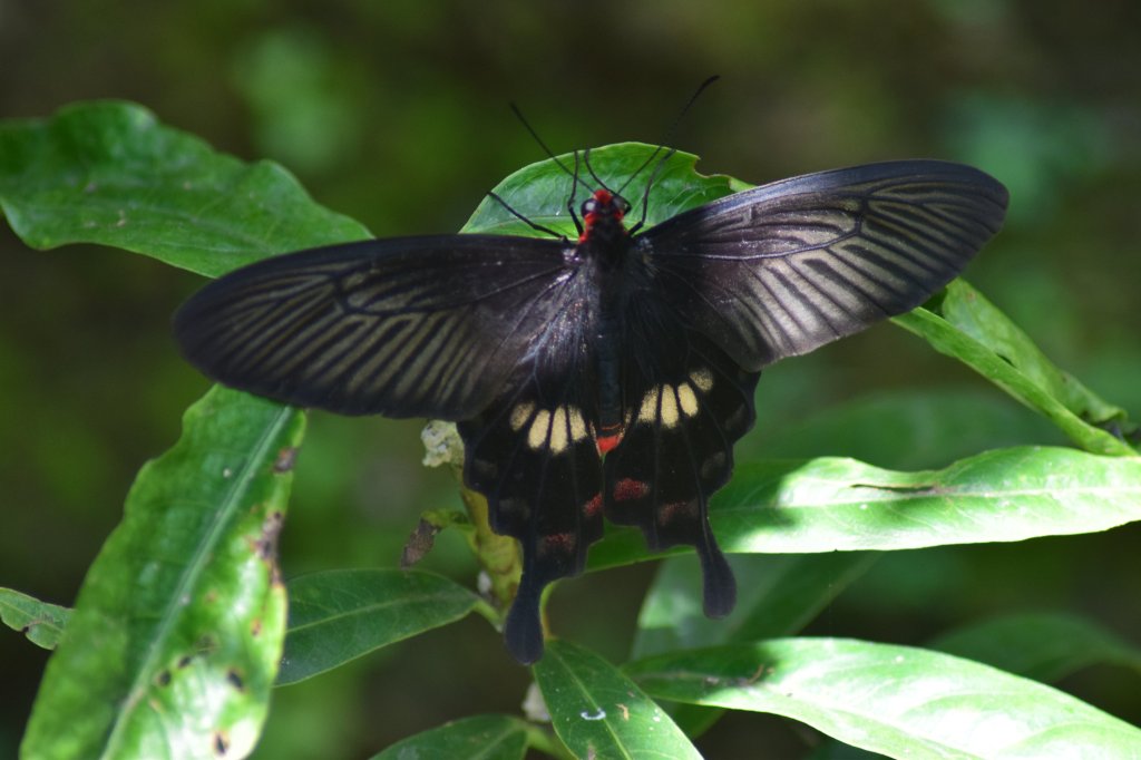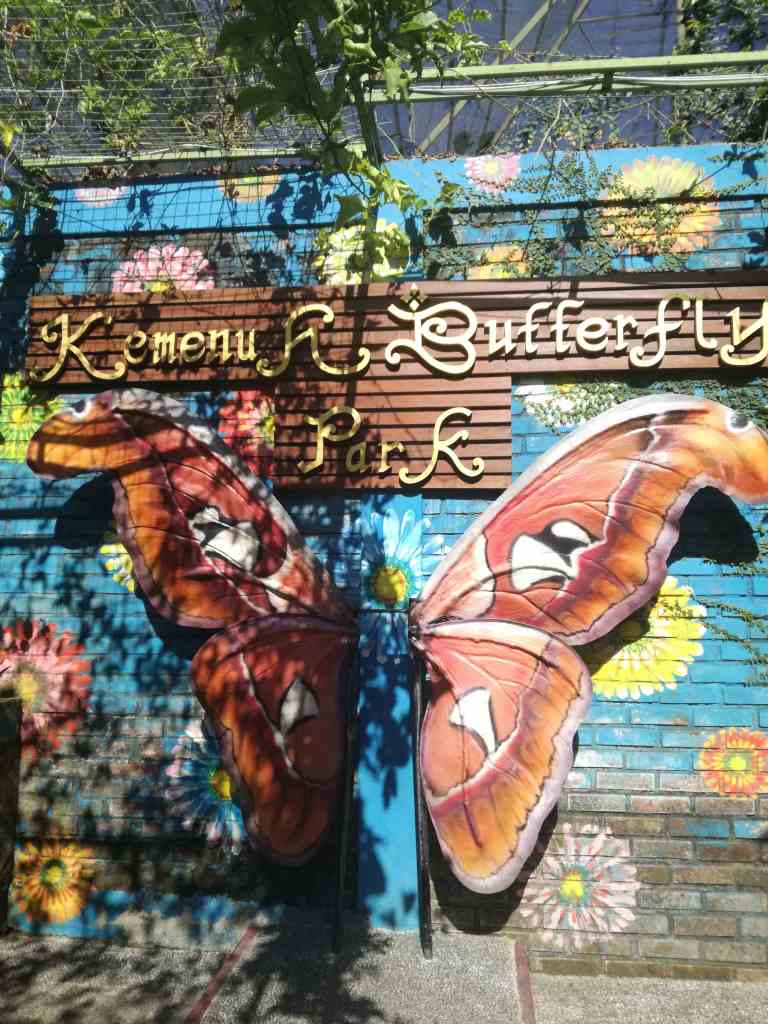Wir landen im Kemenu Butterfly Park und sind begeistert. Wir betreten den Park, der eine große mit feinen Netzen überspannte Anlage darstellt. Überall flattert es in bunten Farben. Toll anzusehen und wunderschön gestaltet. Auch das Haus mit den Riesenmotten ist durchaus beeindruckend. Hoffentlich fressen die keine Klamotten.