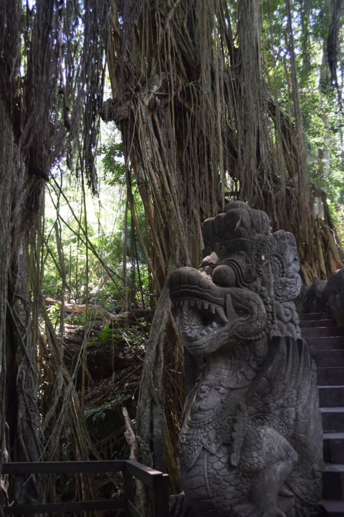 Es ist friedlich hier im Monkey Forest und man bekommt einen tollen Eindruck von den hier frei lebenden Affe. Das ist schon etwas anderes als im Zoo und man kann hier wunderbar zwischen den alten Bäume, kleinen Tempeln und wundervollen Steinmetzarbeiten spaziern gehen.