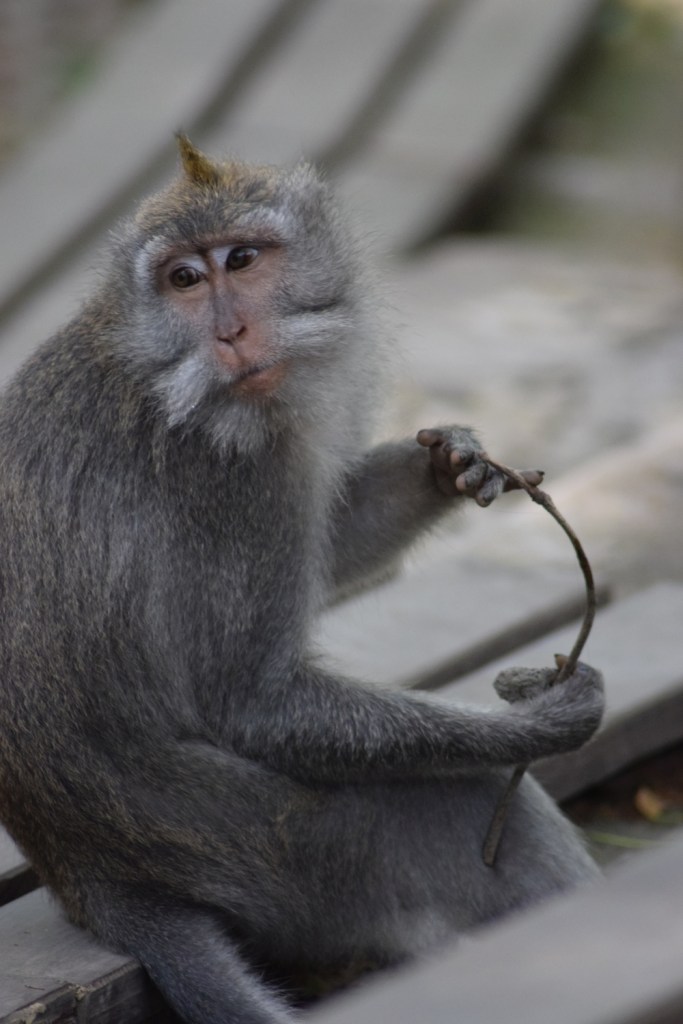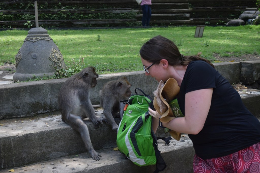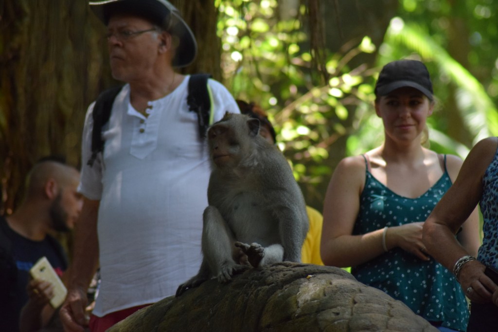Nach einer entspannten Poolsession fahren wir mit dem Shuttle nach Ubud und machen uns zu Fuß auf den Weg zum Monkey Forrest.