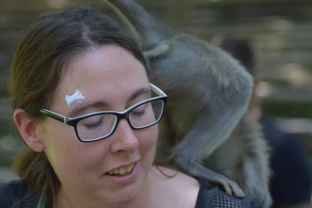 Selbst Schuld – wir wussten ja Bescheid.Natürlich liessen es sich die Affen auch nicht nehmen ein bisschen auf Uschi herumzuturnen, um ihren Rucksack und ihre Haare zu checken 😉