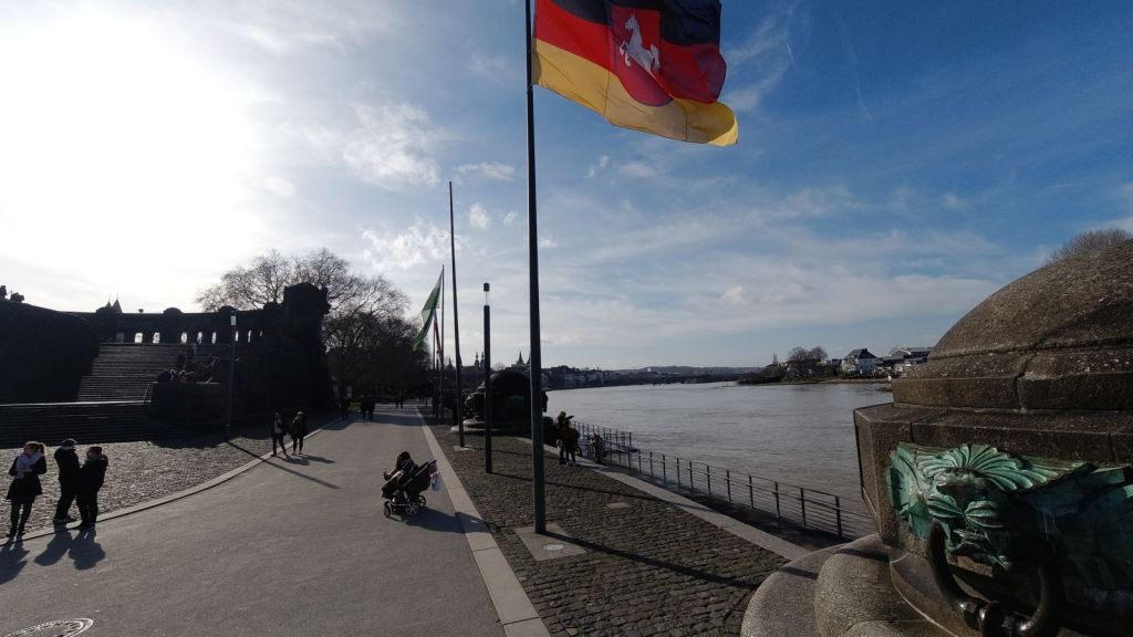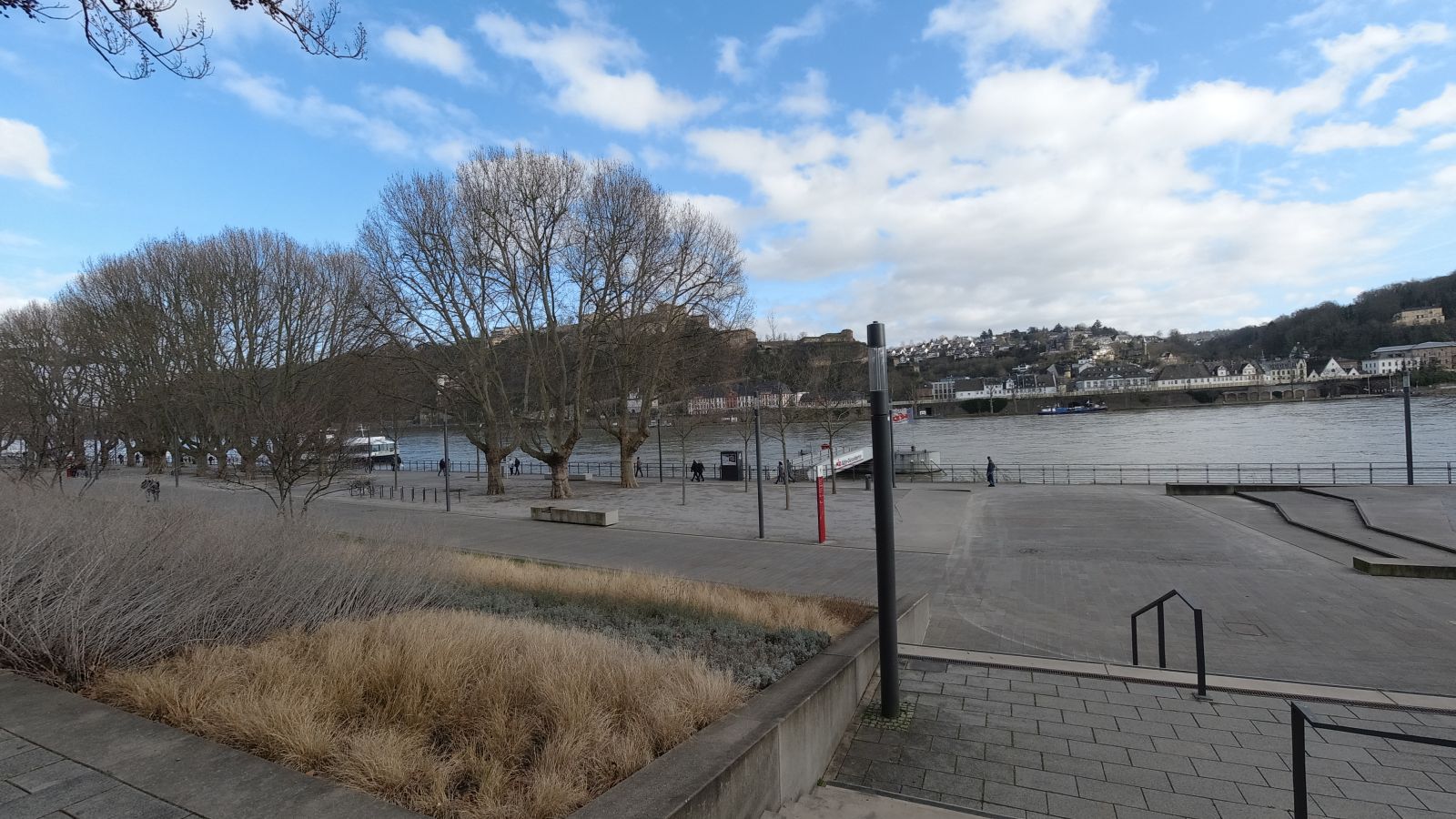Wir starten unsere Stadttour mit einem Spaziergang am Rhein entlang und laufen Richtung Deutsches Eck.