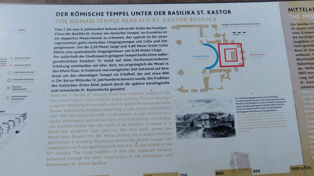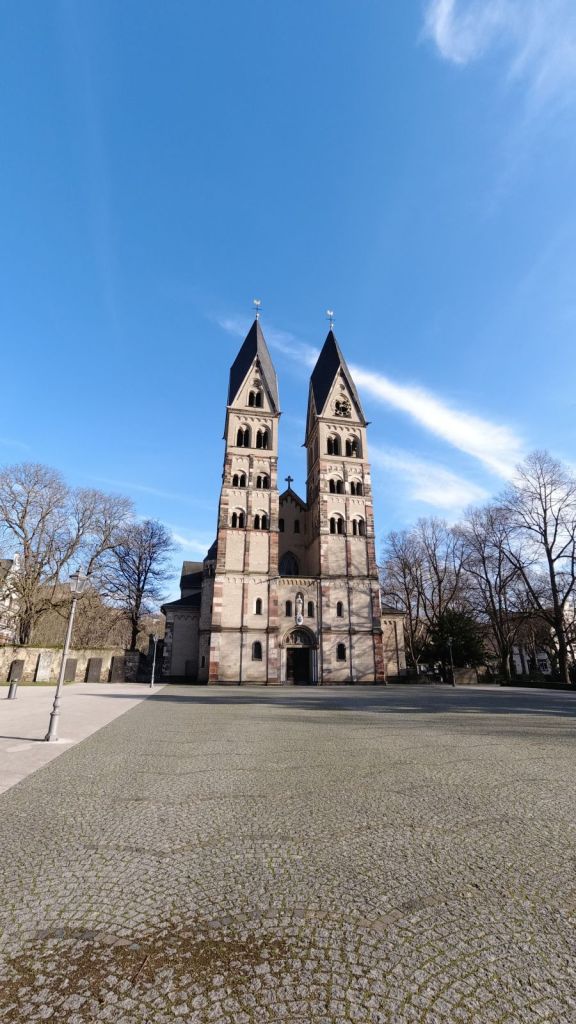 Weiter geht es in Richtung der Basilika Sankt Kastor. Die Basilika wird umgeben von dem knapp 7.200 qm großem Blumenhof. Dieser ist sogar Teil der Welterbe-Gärten, wie uns ein kleines Schildchen am Mauerdurchgang neben dem Ludwig Museum verrät. Hier müssen wir auf jeden Fall im Frühjahr nochmal hin, wenn alles anfängt zu blühen!