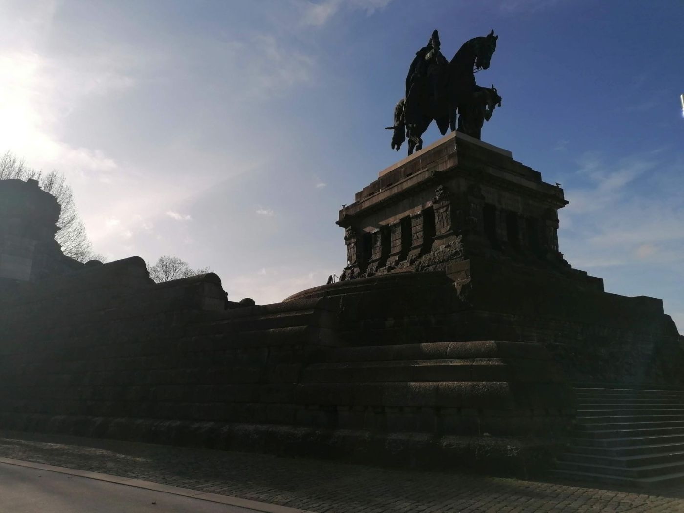 Im zweiten Weltkrieg wurde die Originalstatue zerstört und bis in die 90iger Jahre stand der leere Sockel, welches ein Mahnmal darstellen sollte, am Deutschen Eck. Erst dann kam eine verkleinerte, nachgebildete Statue auf den Sockel. Die zerstörte alte Bronzestatue wurde zum Teil eingeschmolzen und zum Bau von Waffen verwendet. Wie durch ein Wunder hat allerdings der Originalkopf überlebt – diese könnt ihr heute im Mittelrhein Museum Koblenz noch sehen. Dazu muss man auch kein Eintritt für das Museum zahlen, sondern der Kopf befindet sich noch vor der Museumkasse. Leider durften wir kein Foto machen.