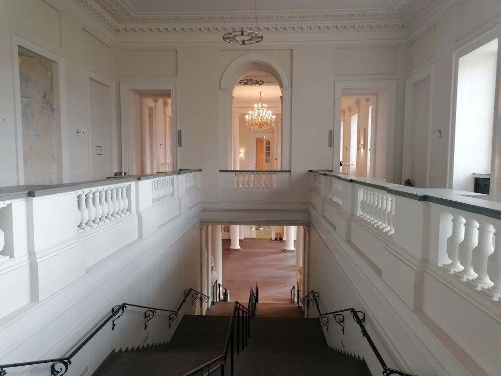 Das Innenleben des Schlosses enttäuscht uns leider. Die wenigen zugänglichen Räume sind Kongressräume. Unten befindet sich ein Café, welches ganz nett aussieht, aber wir sind noch leicht überzuckert von unserer Waffel. Enttäuscht verlassen wir das Schloss auf der anderen Seite und stehen im Schlosspark.