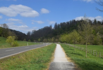 Am Ende des Absteiges führt eine kleine Brücke über den Teilebach. Wir wengen uns nach links und folgen dem Bach für ca. einen Kilometer bis wir auf die L329 treffen, welche wir überqueren.