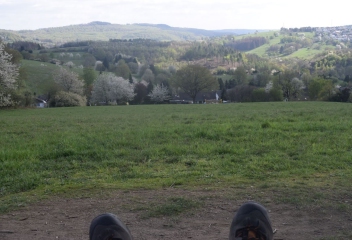Ab jetzt geht es langsam in Richtung Parkplatz zurück, wo wir nach knapp drei Stunden (Pausen haben wir rausgerechnet) wieder ankommen. Ein letztes Mal begleitet uns links die Aussicht auf Kadenbach, aber irgendwie werden wir einfach nicht glücklich mit dem Ausblick auf Häuser 😀