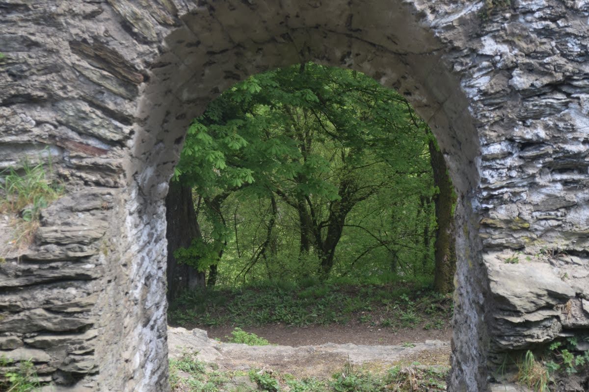 Nach einer kleinen Pause im Innenhof der Burgruine geht es bergab – begleitet von dem lauten Kreischen einer Kettensäge. Es ist einfach nicht unser Tag!