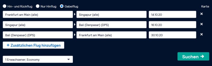 - Wollt ihr zum Beispiel vom 14.10.-30.10. nach Bali fliegen kommt in das erste Feld: Euer Heimatflughafen —–>Singapur ———> 14.10.