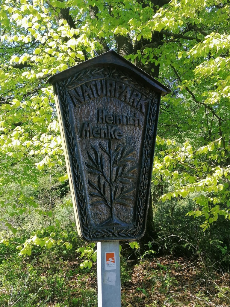 Auf der anderen Straßenseite geht es dann in den Dr. Heinrich Menke Park. Später erfahren wir noch, wer das war. Hier befinden wir uns nach einem kurzen Waldstück wieder in einer Landschaft, wie in dem vorhin durchquerten Naturschutzgebiet Heidbüchl.