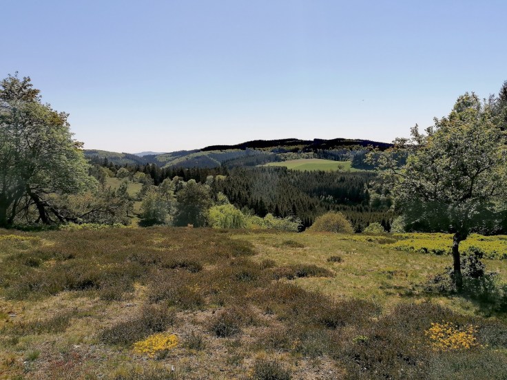 Nach nur einem kurzen Stück des Weges entlang, führt uns der Weg bereits an den schattigen Waldrand und schon nach kurzer Zeit sind wir mitten in der Heidelandschaft und im Naturschutzgebiet Heidbüchel. Hier erwartet uns ein kleiner Anstieg, der uns aber mit einem Blick über die Heidelandschaft und die kleine Ortschft Arft belohnt. Eine solche Landschaft haben wir bisher noch nicht gesehen und wir sind schlicht beeindruckt von der Farbvielfalt. Schaut euch nur mal diese Farben an…