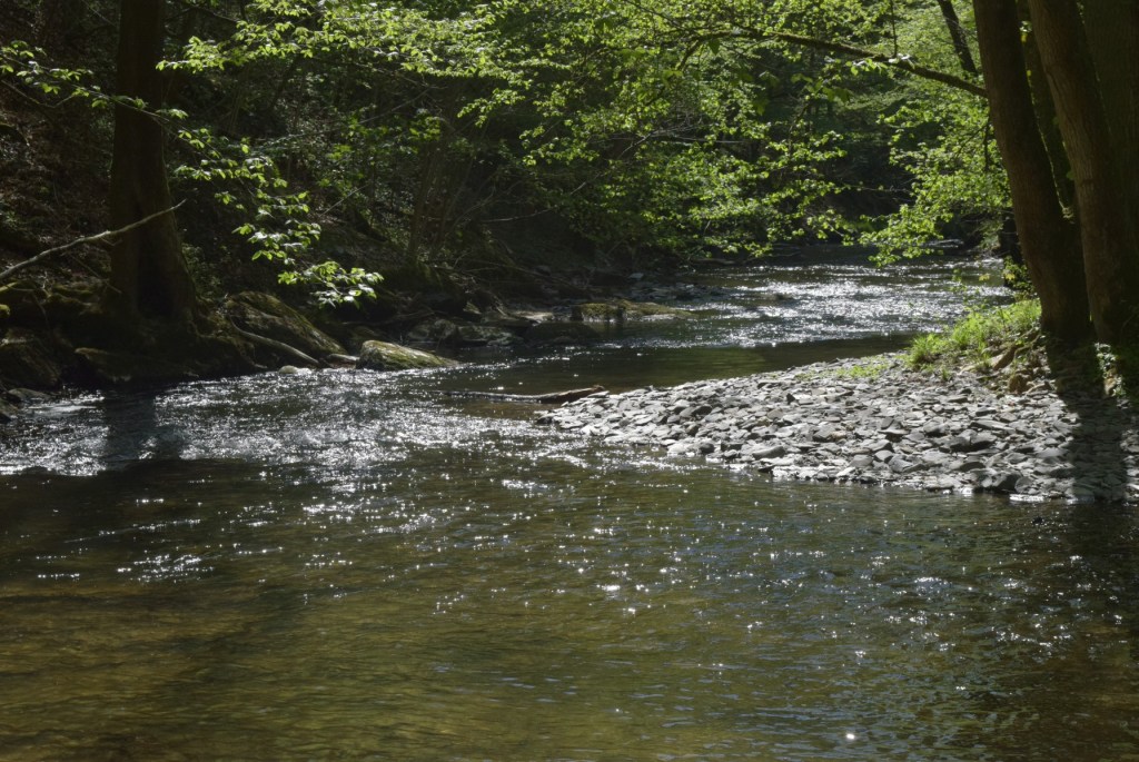 Bergab geht es in das wunderschöne Elzbachtal, wo wir auch bald das leise Rauschen des Elzbaches hören. Unten im Tal erwartet uns ein herrlicher Anblick aus glitzerndem Wasser, eine Steinbrücke (über die wir unseren Weg fortsetzen) und Sonnenstrahlen, die durch die Bäume fallen. Wir lieben diesen Weg jetzt schon =)