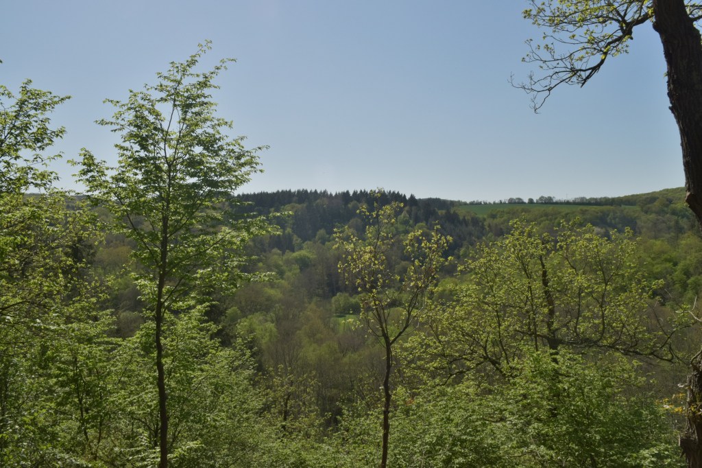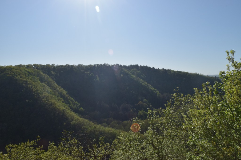 Nachdem wir uns lange genug an dem Anblick der Burg erfreut haben, heißt es irgendwann doch wieder Abschied nehmen und wir laufen zurück zu dem Punkt, wo unser Zuweg das erste Mal auf den eigentlichen Traumpfad Eltzer Burgenpanorama traf. Aber ein kleiner Blick zurück sei uns ja noch gestattet 😉