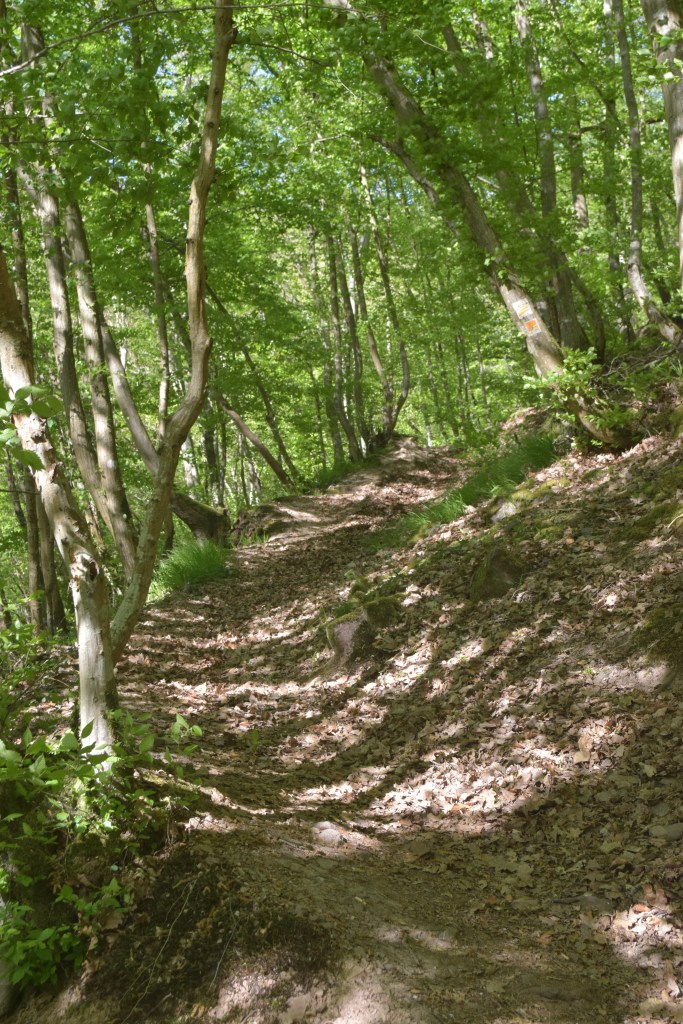 Ein sportlicher Anstieg auf schmalen Wegen führt uns letztlich hoch bis auf das Moselplateau. Der Aufsteig erfordert auf jeden Fall festes Schuhwerk und Trittsicherheit, da die Wege oft sehr steinig sind und es durchaus mal passieren kann, dass der eine oder andere Stein wegrutscht.