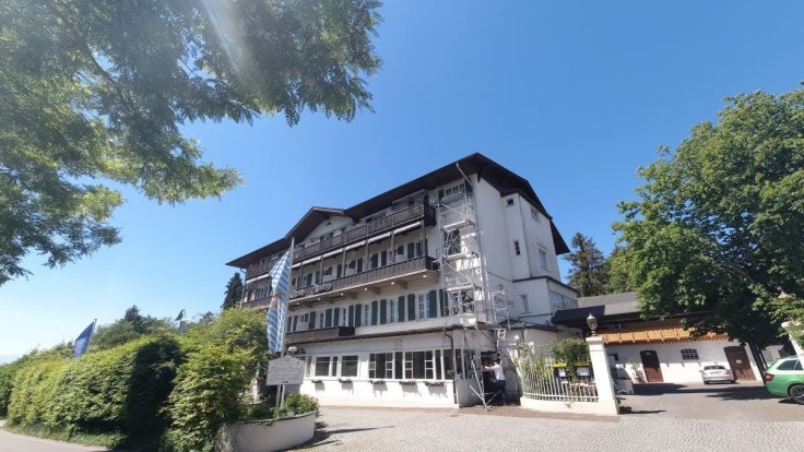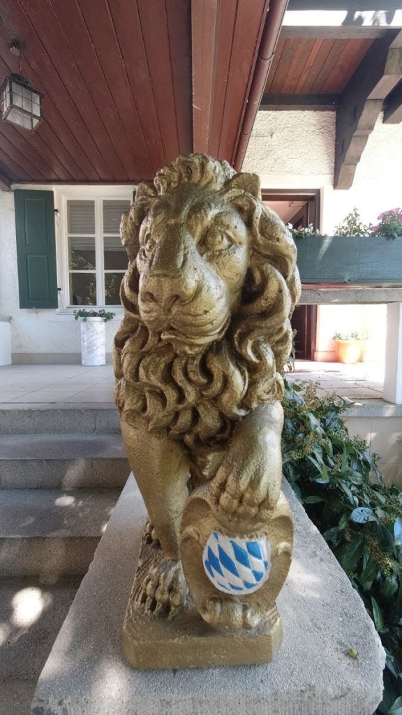Von außen strahlt das Hotel bayrische Tradition aus. Holzbalkons, Fresken an der Fassade, eine große bayrische Flagge, grüne Fensterläden, ein typischer goldener Löwe mit bayrischem Wappen… Genau so haben wir uns ein solches Traditionshaus vorgestellt – ist das Hotel doch immerhin seit über 100 Jahren in Familienbesitz.