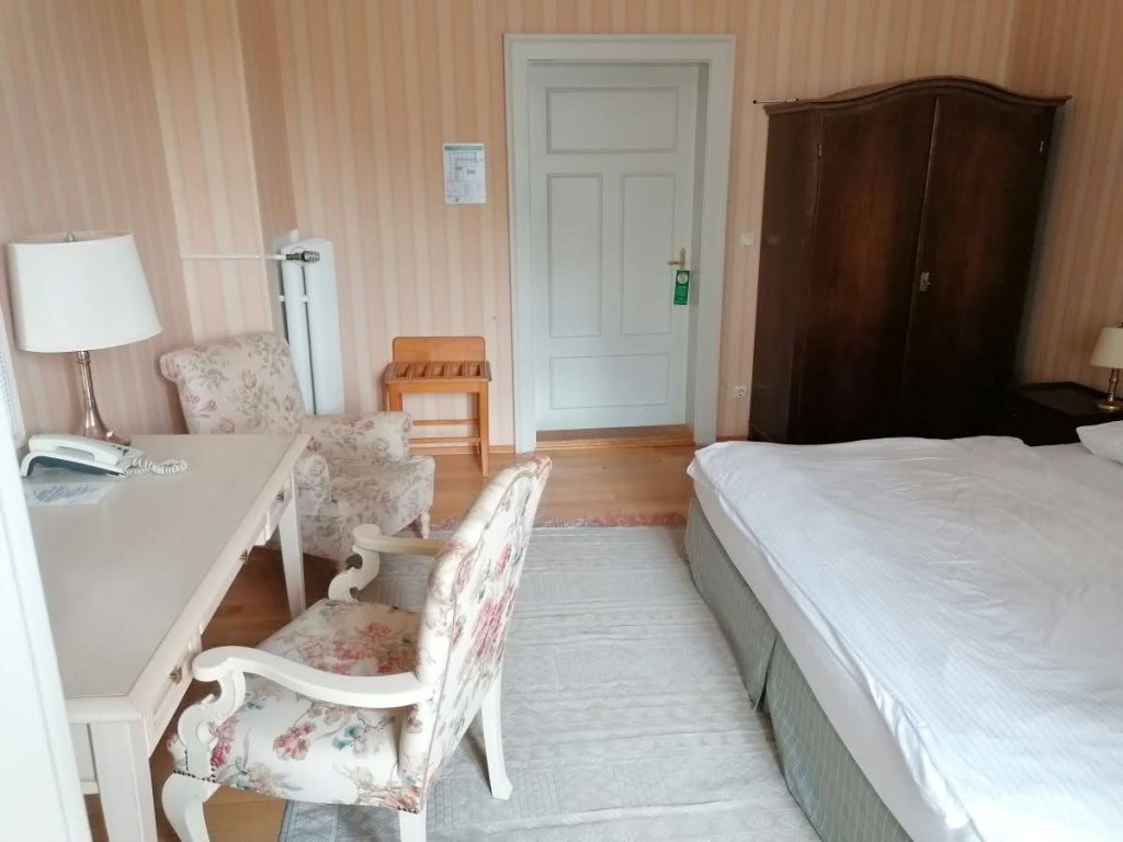 An der Rezeption werden wir freundlich begrüßt. Obwohl wir erst vor wenigen Stunden gebucht haben und das Hotel erst seit dem Vortag wieder geöffnet hat, klappt das Einchecken problemlos. Wir melden uns an und machen uns auf den Weg zu unserem Zimmer. Wir haben ein Doppelzimmer mit „Dorfblick“ gebucht. Natürlich gibt es auch Zimmer mit Seeblick und mehrere Suiten. Die meisten Zimmer sind mit einem Balkon ausgestattet. Insgesamt verfügt das Hotel über 35 Doppel- und 30 Einzelzimmer, welche individuell gestaltet sind. Wer sich der Kaiserin besonders verbunden fühlen möchte, kann sogar die original Sisi Suite buchen.