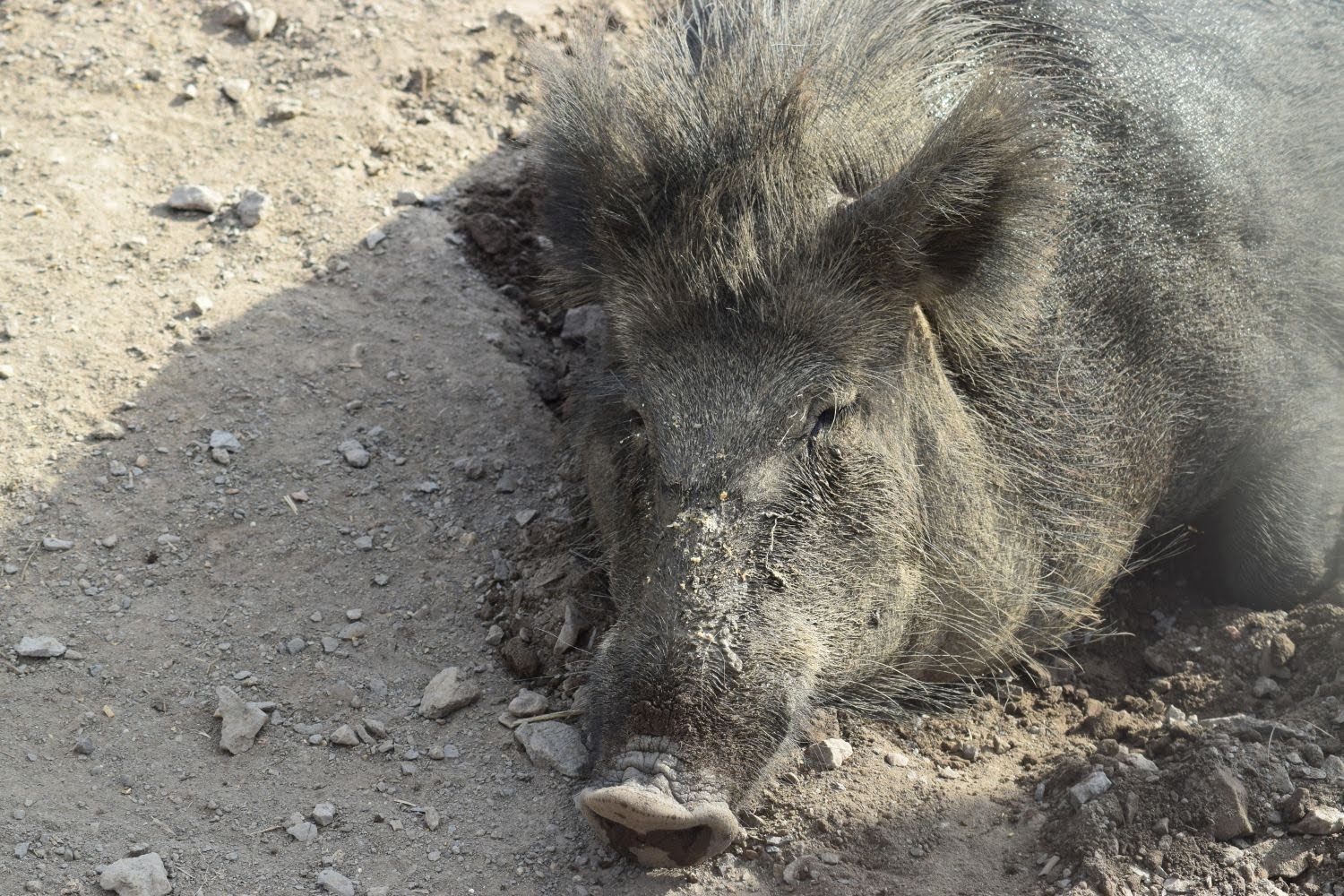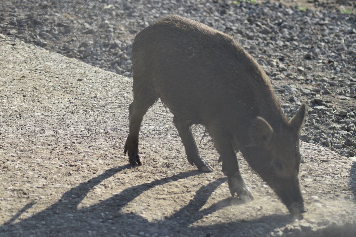 Direkt neben dem Rotwild wohnen – kaum zu überhören – die Wildschweine. Das Wildschweingehege gefällt uns richtig gut, weil es einfach sehr artgerecht gestaltet ist. Auch hier haben die Tiere ein sehr großes Gelände. Es gibt viele Büsche, die den Tieren Deckung bieten und Möglichkeiten zum Suhlen. Gerade das Suhlen ist für Wildschweine sehr wichtig, da ihnen die dicke Schlammschicht Schutz vor bspw. Insekten bietet. Aber Achtung Wildschweine – besonders männliche Wildschweine (Keiler) – sind mit Vorsicht zu genießen, da sie ordentlich scharfe Eckzähne (Gewaff) haben.
