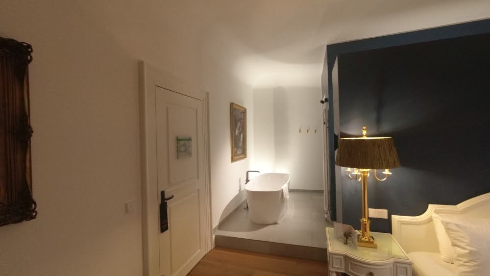 – Fürstenzimmer Napoleon (Napoleon Suite): 40 qm², freistehende Badewanne, Dusche und separates WC – in diesem Zimer residierten wir ganz fürstlich und das stellen wir euch auch gleich noch vor!