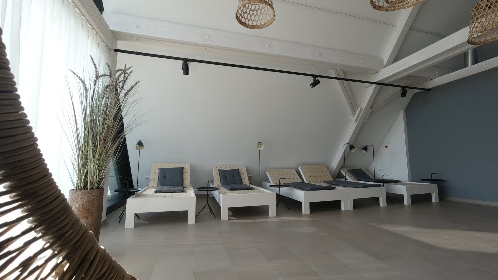 Im dritten Stock des neuen Gebäudeflügels befindet sich der Wellnessbereich. Hier gibt es zwei Saunen. In einem kleinen Ruheraum laden einige Liegen und zwei Hängekorbsessel zum Entspannen ein. Auch ein kleiner Außenbereich ist vorhanden. Die Duschen sind aktuell noch auf Grund von Sanierungsarbeiten geschlossen. Ein kleiner Fitnessbereich mit Fitnessgeräten ist noch in Planung und soll ebenfalls auf dieser Ebene entstehen. Mehr zum Wellnessbereich sehr ihr in unserem Video am Ende des Beitrages.