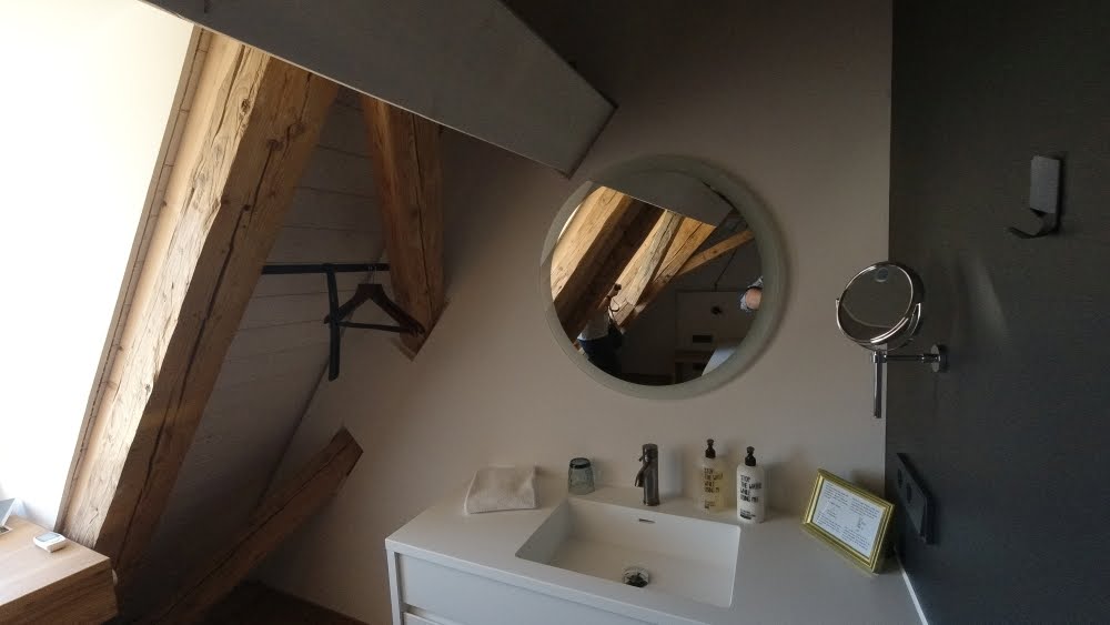 Unser Bett ist, wie bereits erwähnt, aus dem Originalbestand und ehrlich gesagt haben wir abends schon ein bisschen Gänsehaut, wenn wir uns vorstellen, dass sowohl Marie Antoinette als auch Napoleon schon in dieser Zimmer und vielleicht sogar in diesem Bett geschlafen haben. Wir schlafen auf jeden Fall in beiden Nächten fantastisch. Das Kopfkissen kann man übrigens direkt unten an der Rezeption kaufen 😉 Sollte euch das Kissen nicht gefallen, dann fragt nach der Kissenbar. Ja ganz richtig, eine Kissenbar. Auf Nachfrage erhaltet ihr dann zum Beispiel eine Nackenrolle oder ein Seitenschläferkissen. Wow, so viel Service ist uns wirklich selten wiederfahren!