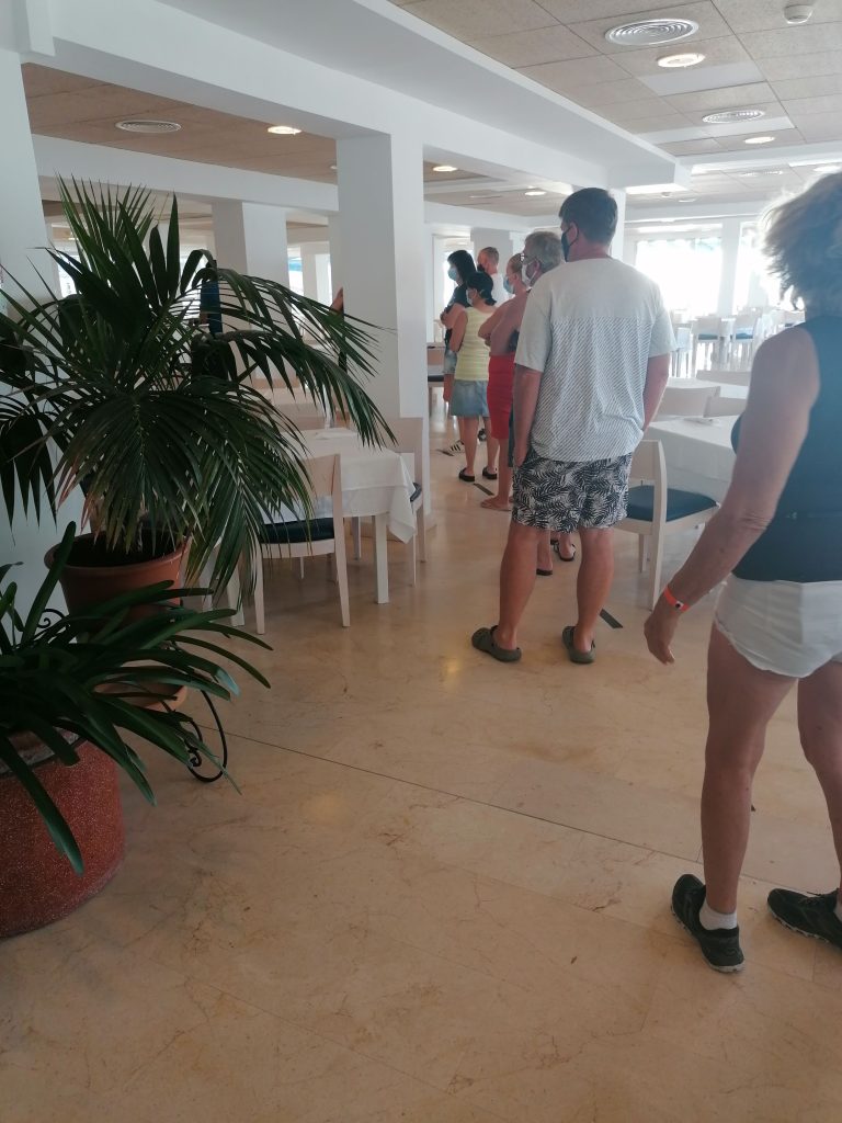 Da es zwar Buffet gibt, die Gäste sich hier aber auf Grund der Corona-Bestimmungen oder dem was das Hotel daraus macht nicht selbst bedienen dürfen, dauert das Ganze eine Weile. Schlangen sind vorprogrammiert. Das das Personal am Buffet weder deutsch noch englisch versteh macht das Ganze nicht schneller, aber dafür lernt man ein paar Brocken Spanisch.