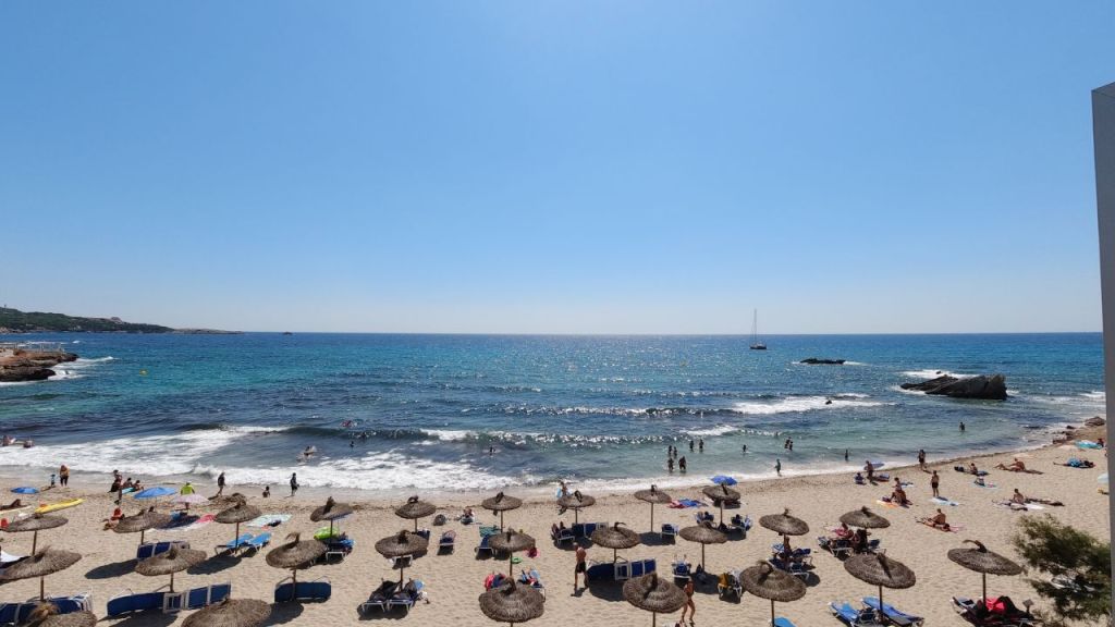 Am nächsten Morgen begrüßt und erneut strahlender Sonneschein am Son Moll Beach.