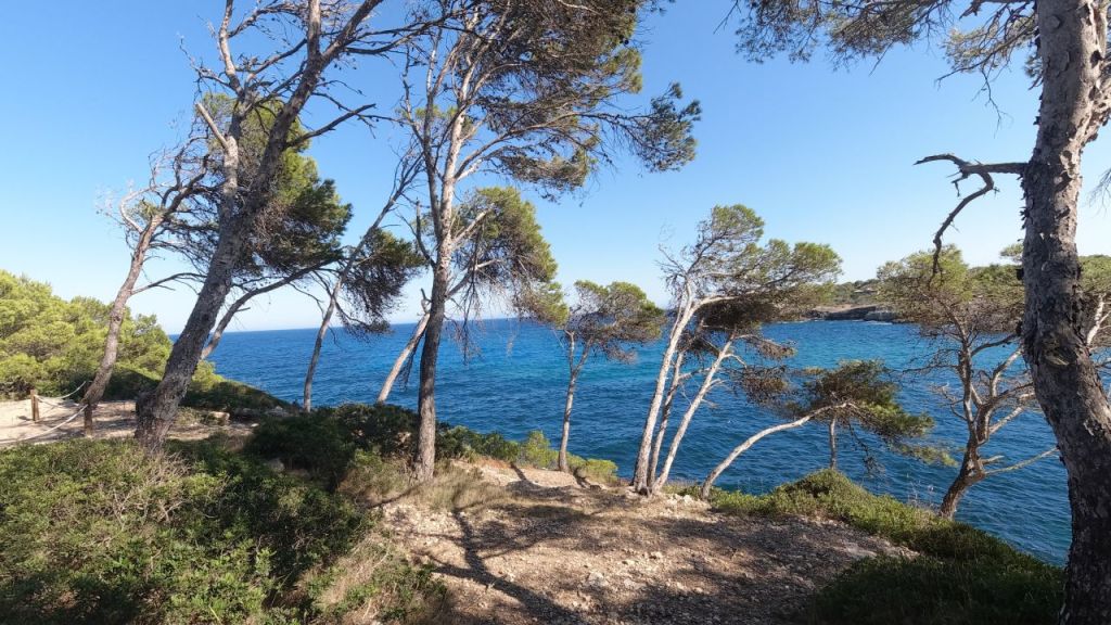 Nach unserem kleinen Ausflug unter die Erde geht es weiter durch die Pinienwälder Mallorcas. Es gibt nur sanfte Steigungen, der Weg ist gut ausgebaut. Maske brauchen wir hier nicht. Wir begegnen nur wenigen anderen Menschen. Wie erholsam 😉