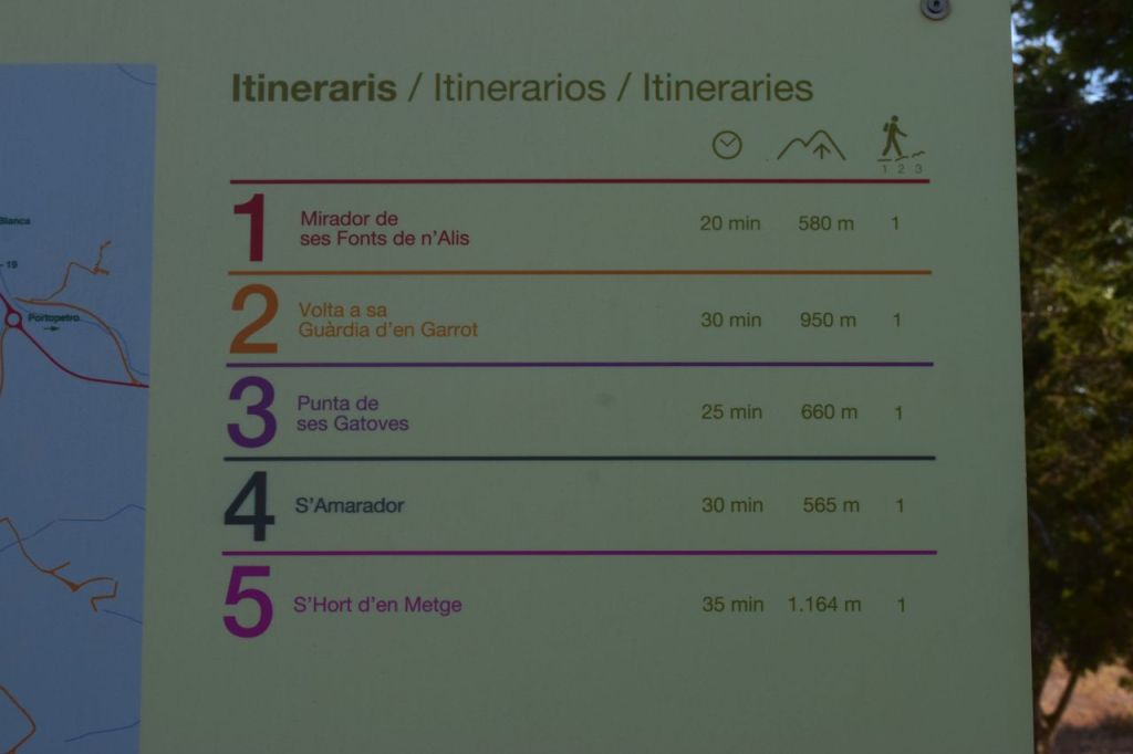 Direkt am Eingang sind auf einer Übersichtstafel die verschiedenen Routen durch den Park aufgezeigt.
