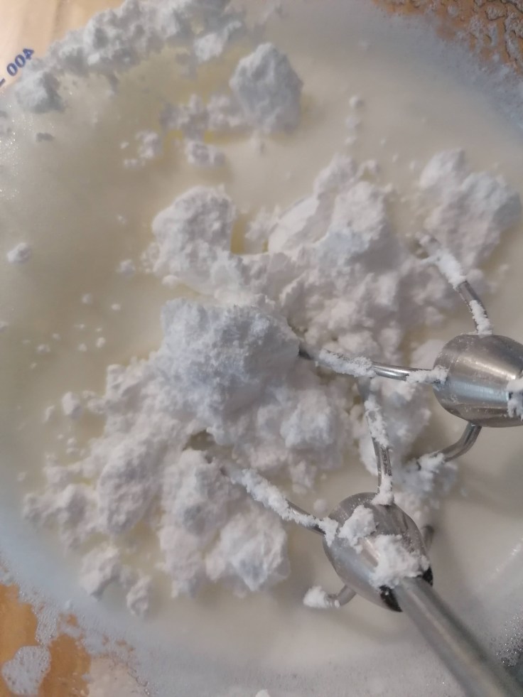 Als Erstes wird der Puderzucker gesiebt. Ja, dass ist bei 350 g leider Einiges zu sieben, aber die Klümpchen kriegt ihr sonst nie wieder raus und ärgert euch am Ende leider nur.