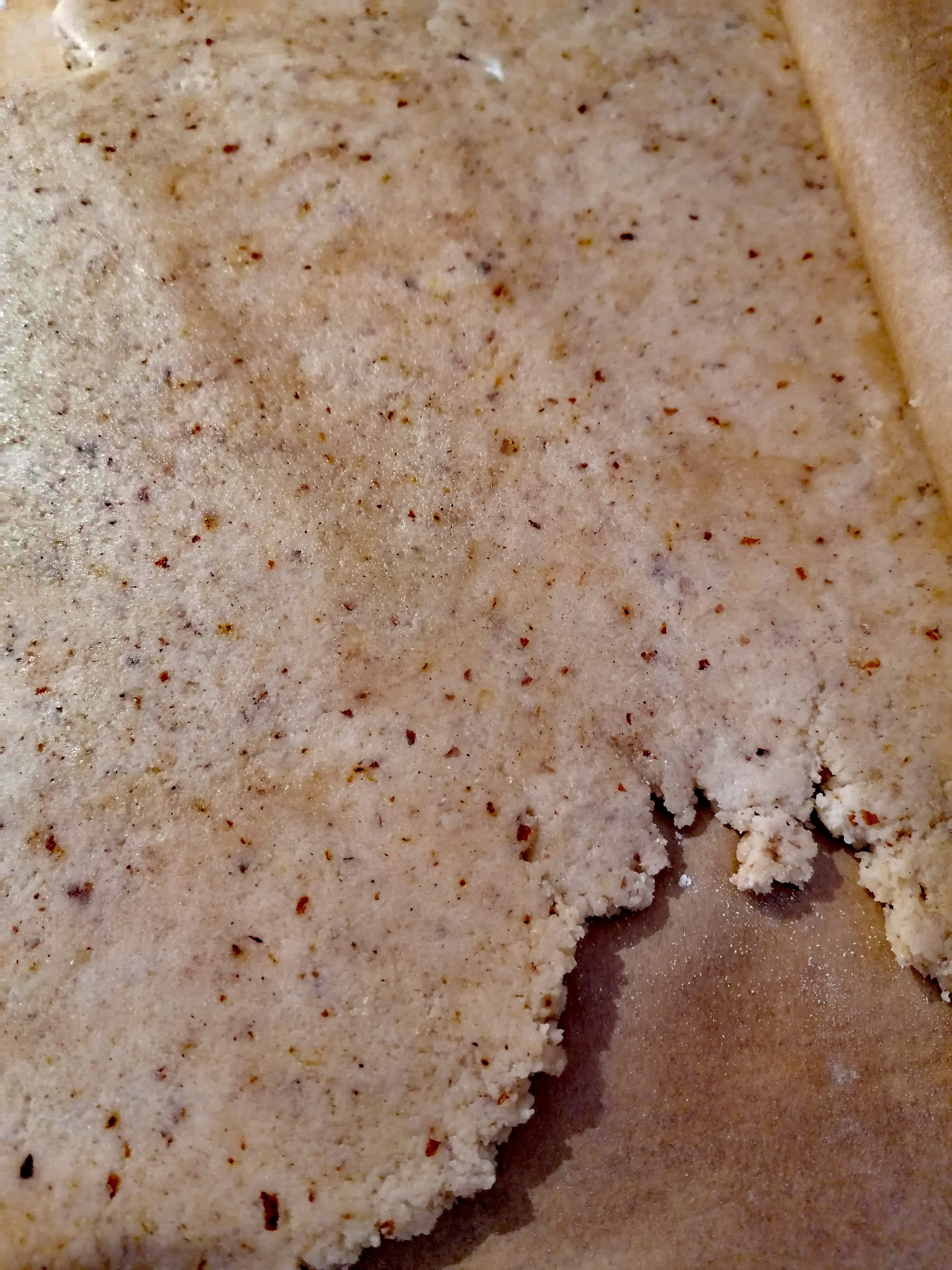 Nach einer Stunde den fertigen Teig aus der Kühlung nehmen und auf einer mit etwas Mehl bestäubten Arbeitsfläche ausrollen. Ich mach das immer gerne zwischen zwei Bögen Backpapier, weil es danach einfach deutlich einfach aufzuräumen ist 😉
