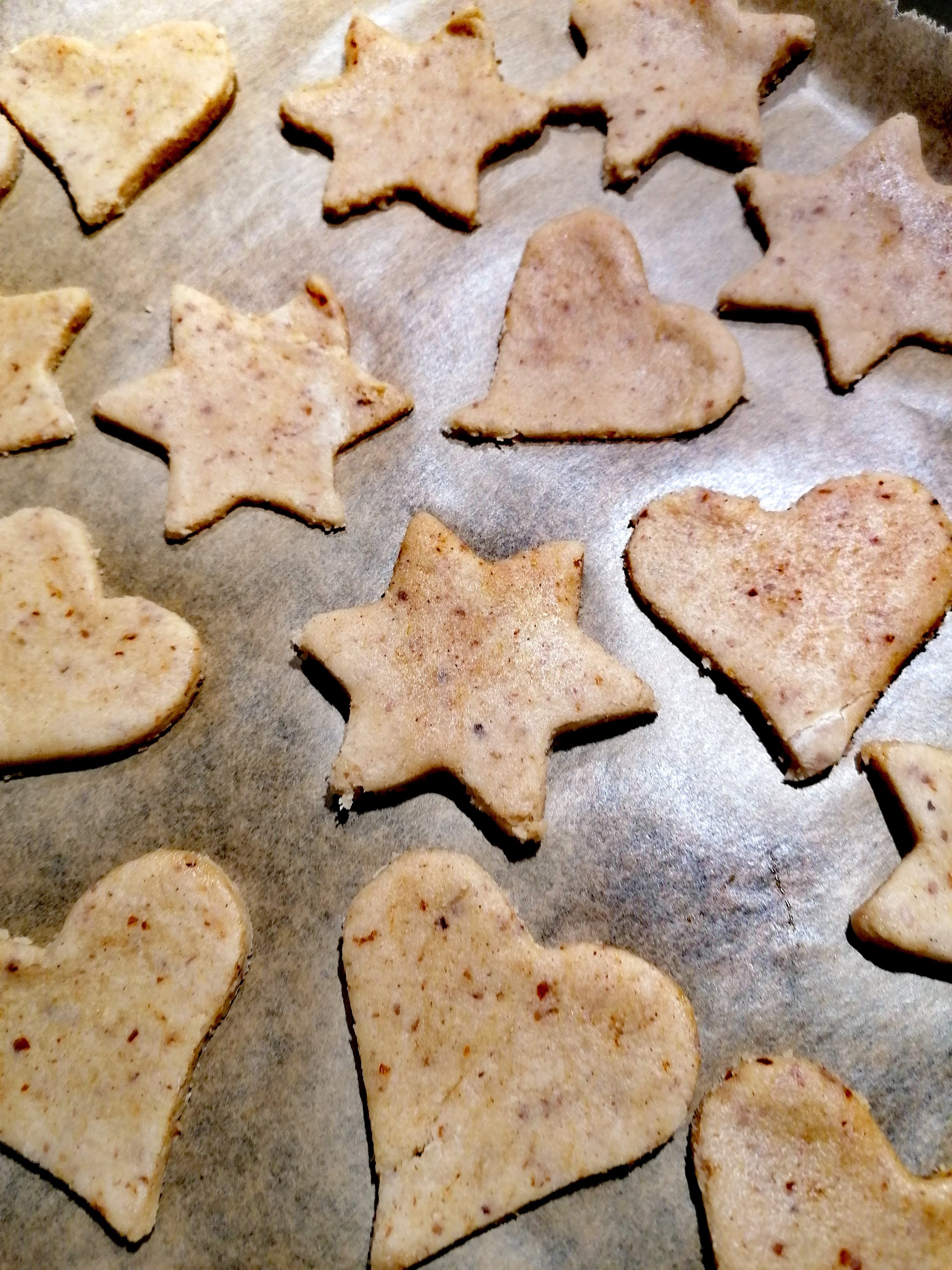 Und nun geht das Ausstechen los – hier sei eurer Fantasie keine Grenzen gesetzt =) Bei uns gab es Sterne und Herzen. Ihr benötigt zwei mit Backpapier ausgelegte Backbleche.