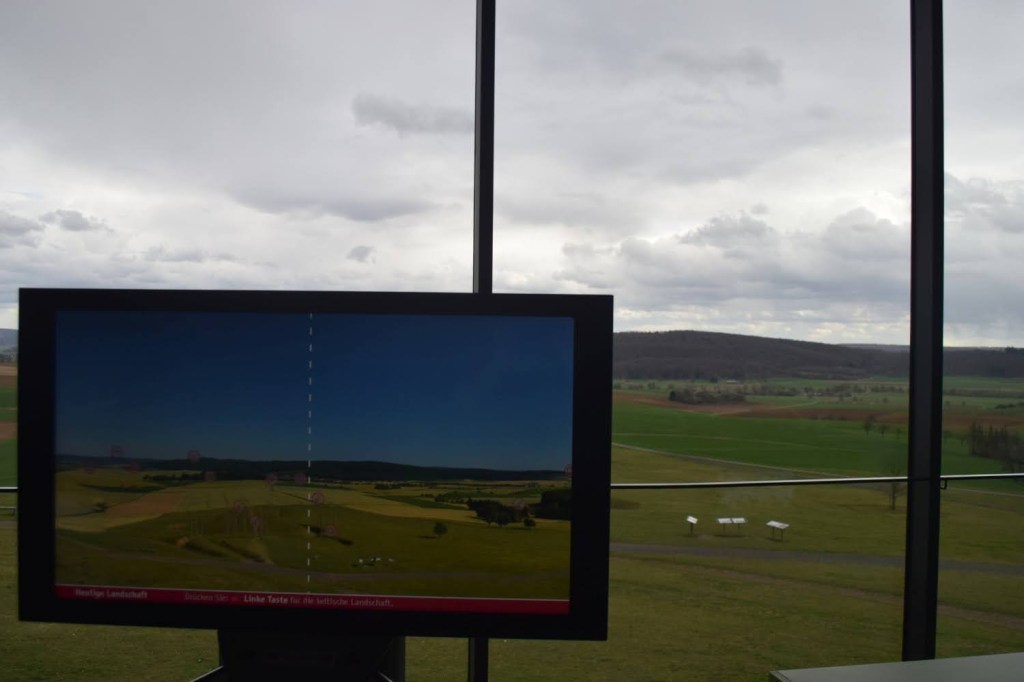 Unbedingt sollte man durch das große Panoramafenster den Blick sowohl über das Ausgrabungsgelände als auch in die Weitern der Wetterau genießen – bei uns war das Wetter leider absolut miserabel und wir konnten nur beobachten, wie uns Regenfronten sowohl von links als auch von rechts umzingeln 😀