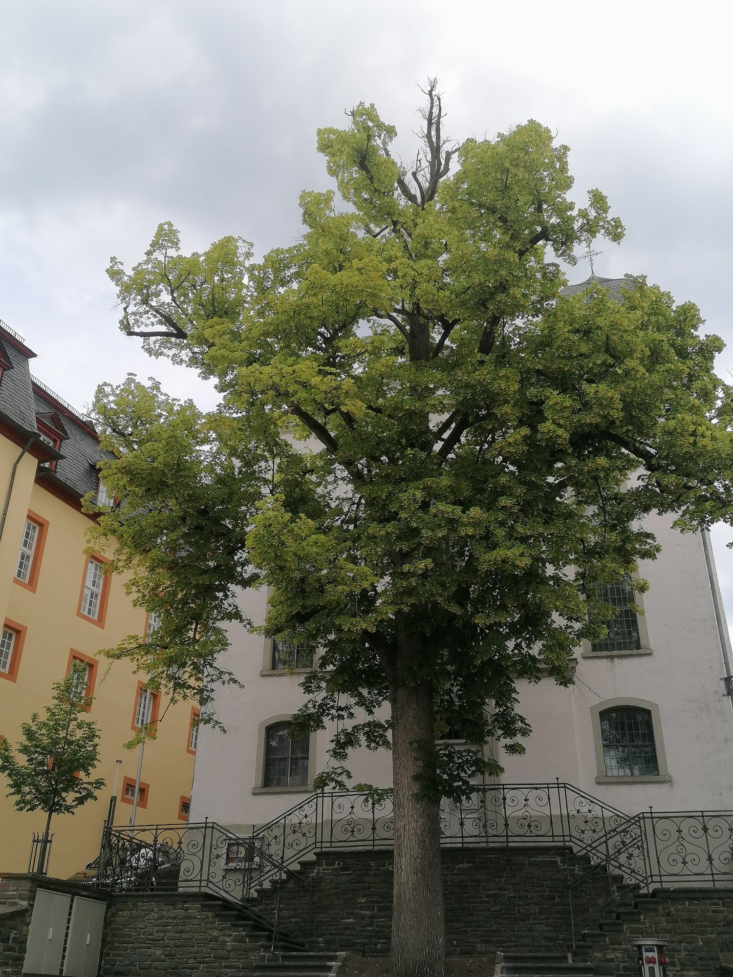 Vor dem doppelläufigen Aufgang zur Kirchenpforte befindet sich eine alte Linde, welche im Jahre 2021 ihren 150sten Geburtstag feierte. Den Beinamen „Friedenslinde“ trägt die Linde da sie am 18. Juni 1871 im Rahmen eines Friedensfestes gepflanzt wurde.