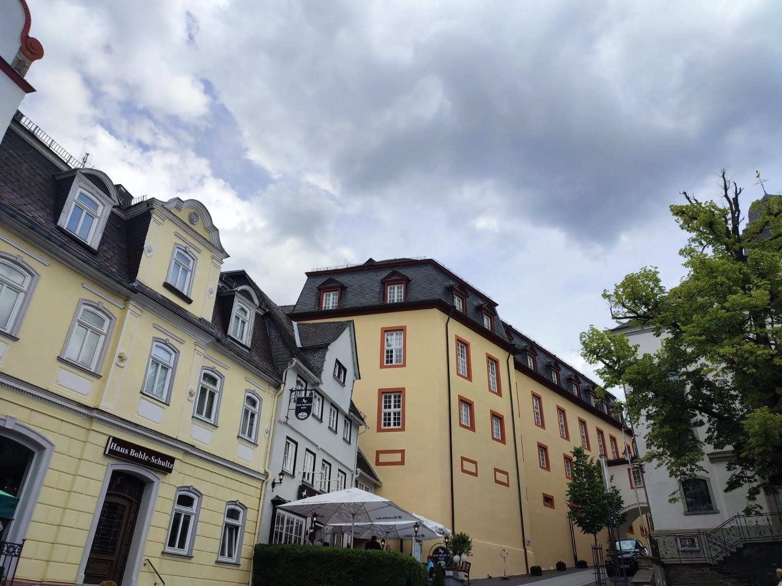 Unter den Fachwerkhäusern am Alten Markt findet sich auch das älteste steinerne Gasthaus Deutschlands – die „Krone“. Errichtet wurde das Gebäude im Jahre 1439 im Renaissancestil von Graf Gerhard II von Sayn. Im Jahre 1531 wurde der Bau im ersten Stock um den dreifenstrigen Erker erweitert.